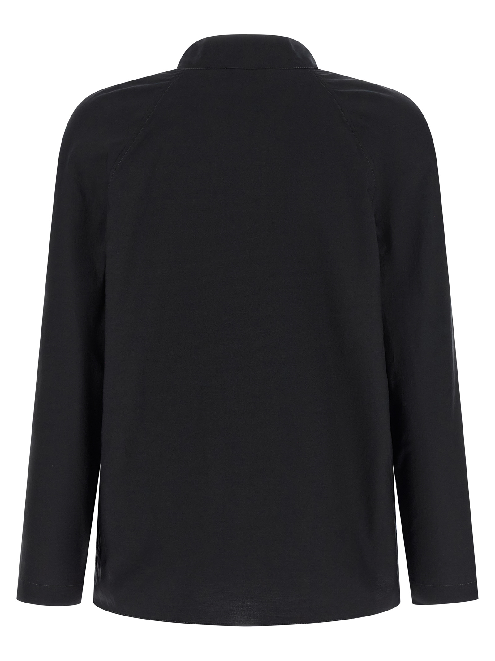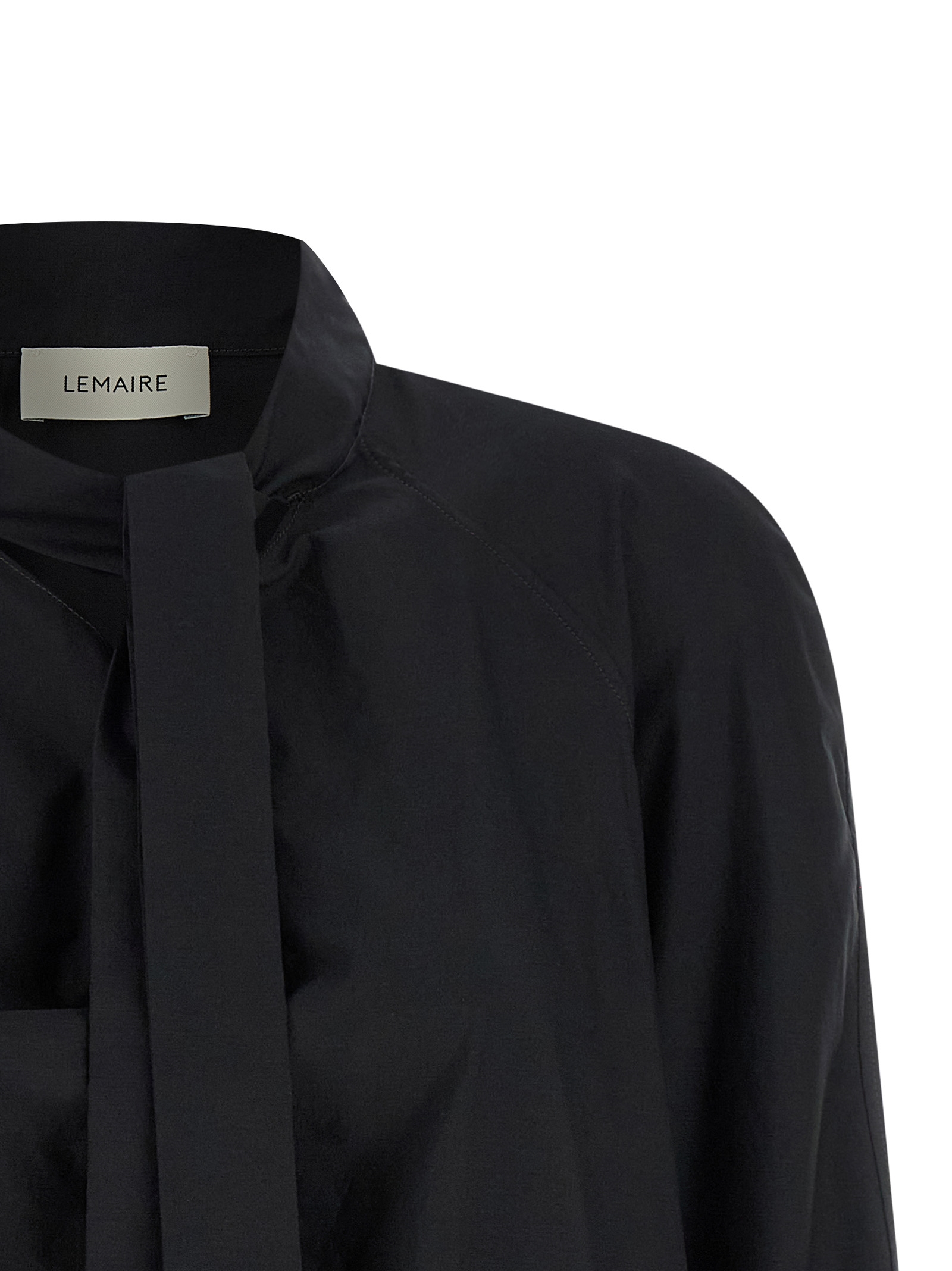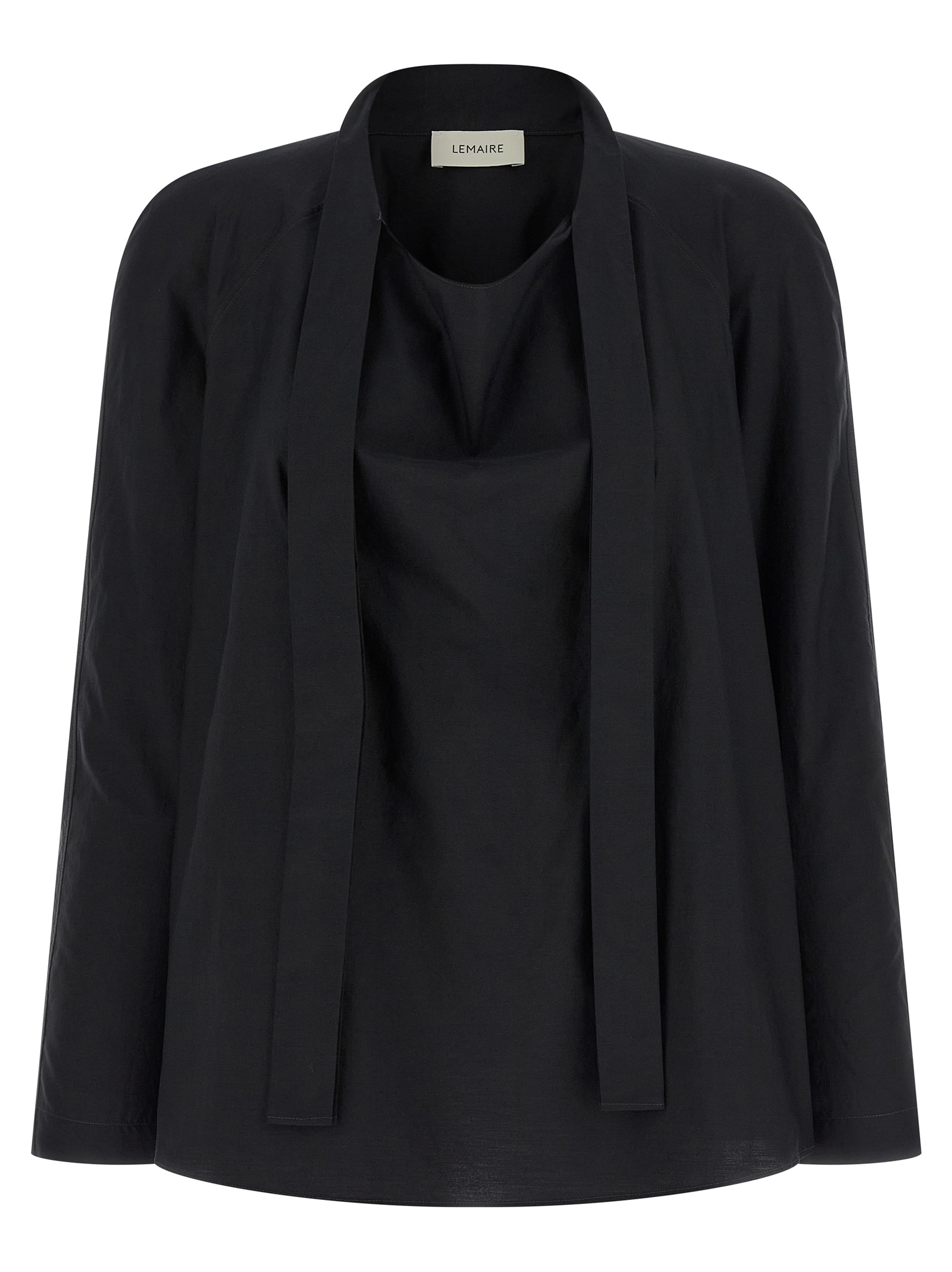 'Ascot' blouse in light cotton and silk blend, round neckline with scarf knotted around the neck, long raglan sleeves with contrast stitching.