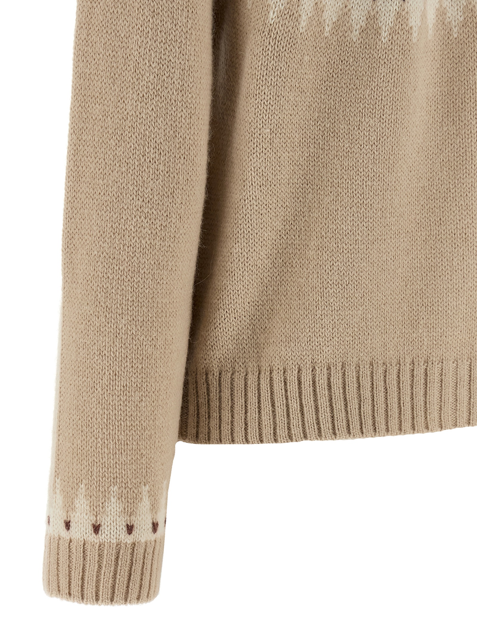 Cabiria1234' alpaca and wool cardigan with Fair Isle jacquard pattern on the yoke, shoulders and cuffs with sequin appliqué, crew neck, front button closure, long cuffed sleeves.