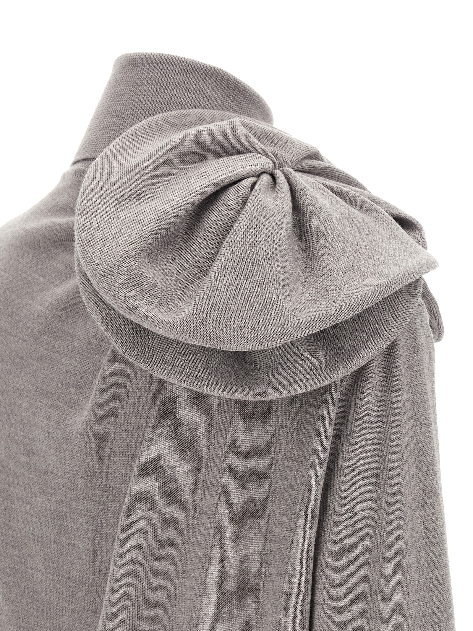 Extra-fine merino wool sweater, 3D flower-effect decoration on the shoulder, turned-up high neck, long cuffed sleeves.
