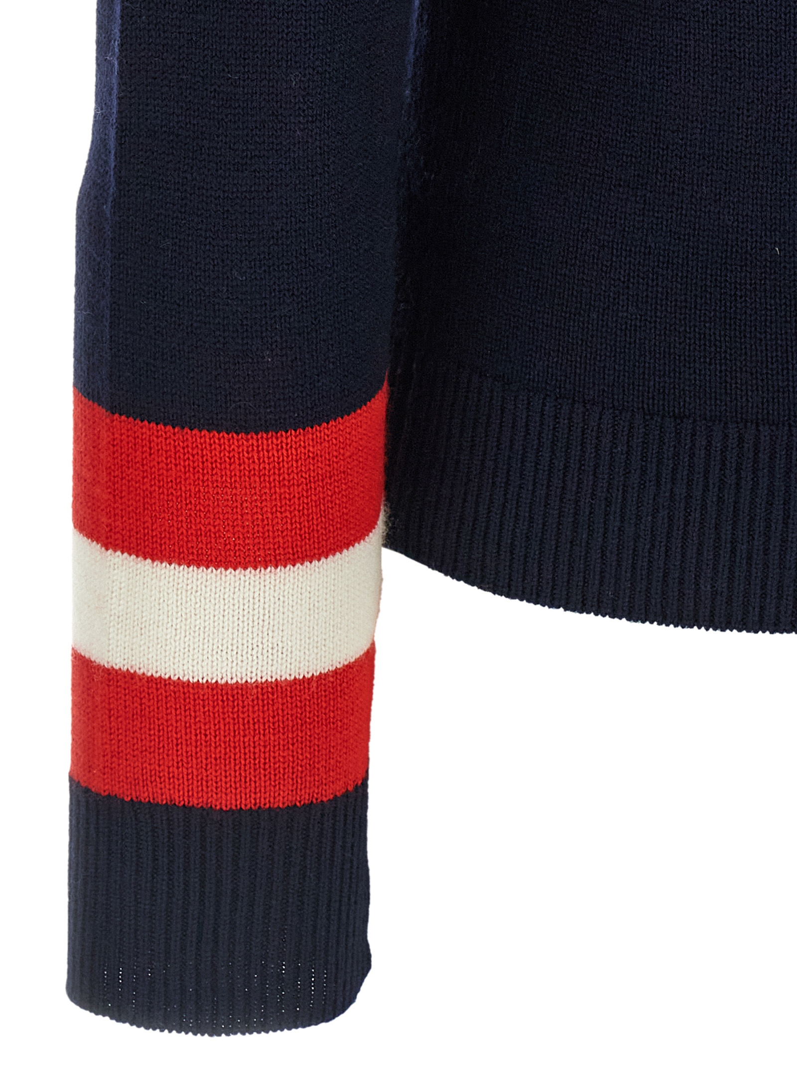 Schild' wool sweater with contrast details and front jacquard pattern, turned-up high neck, long cuffed sleeves.