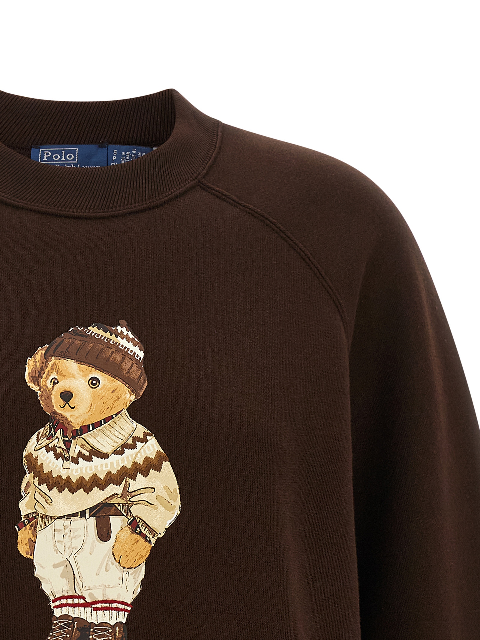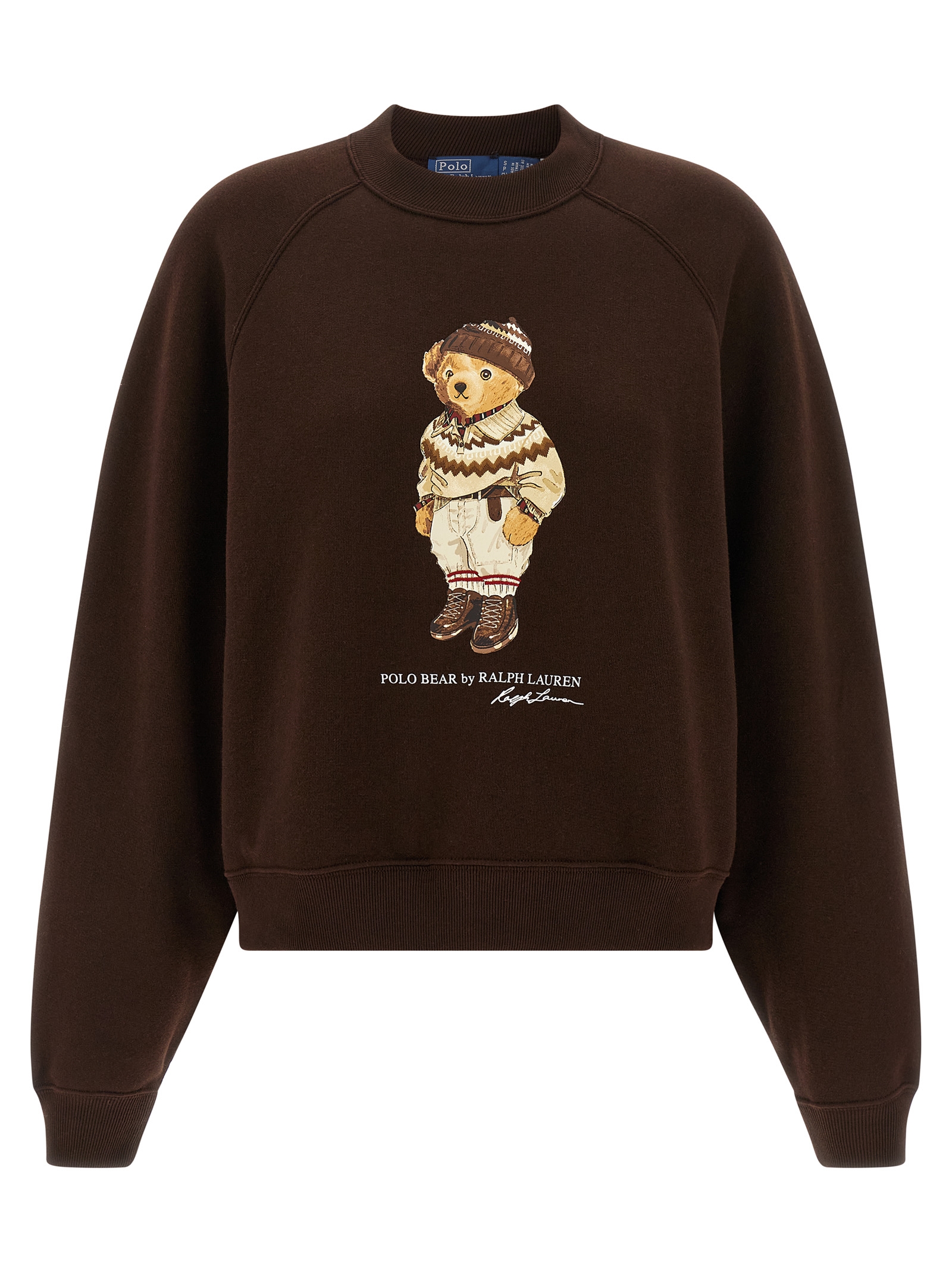 Garment-washed fleece cotton sweatshirt with front 'Polo Bear' print, crew neck, long cuffed sleeves and dropped shoulders.