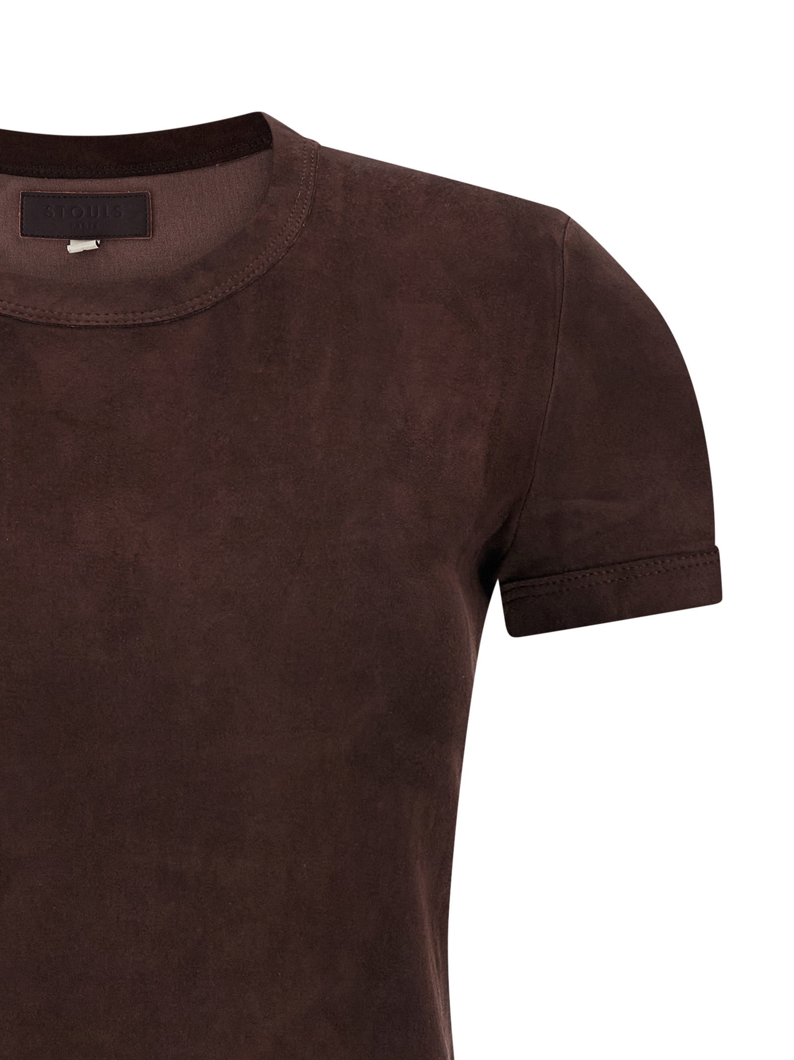 'Stouls 05' suede velour t-shirt with tone-on-tone logo embroidery at the back, crew neck, short sleeves, raw cut hem.