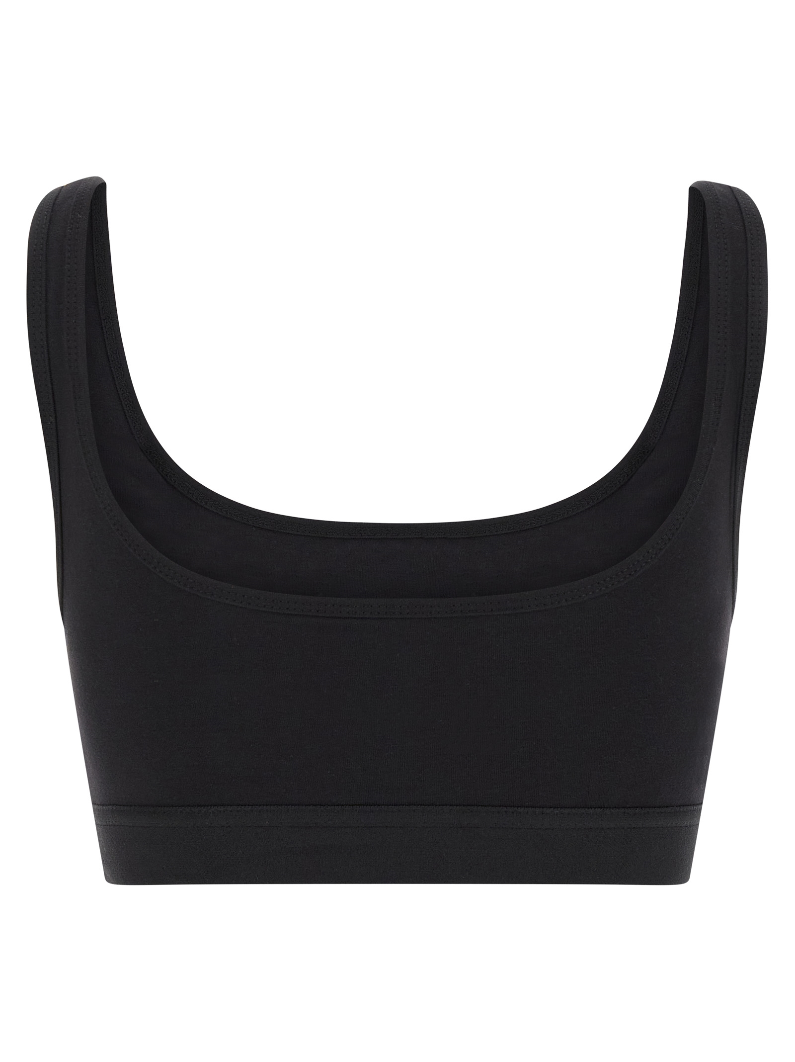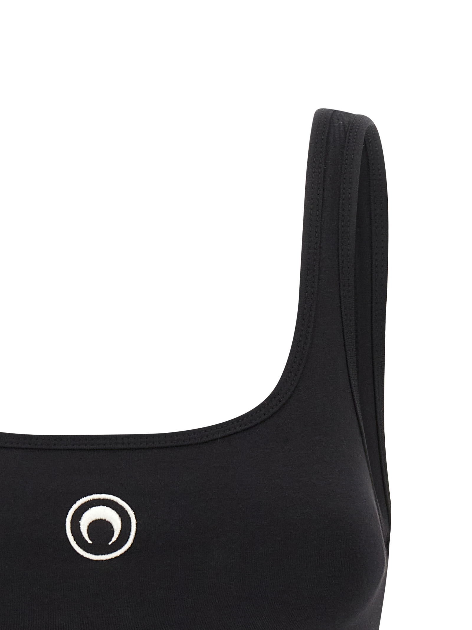 'Moon Logo Stretched Jersey Sport' stretch cotton sporty top with contrast embroidery and logo patch on the front, elastic hem.