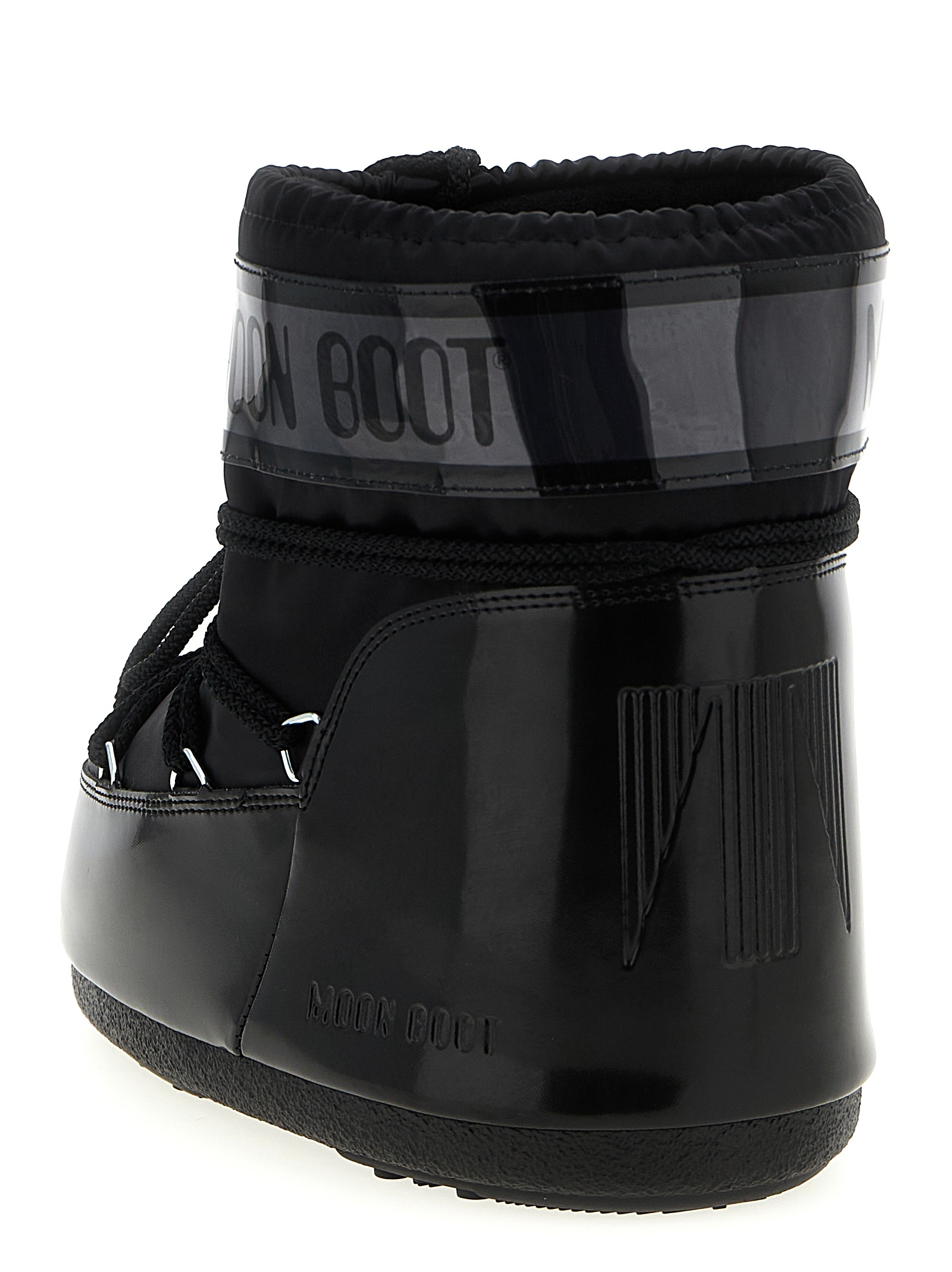 'Icon Low Glance' water-repellent satin and PVC ankle boots, ambidextrous model, soft foam lining, logo band, tubular crossed laces, adjustable drawstring, thermoplastic rubber midsole, non-slip rubber tread.