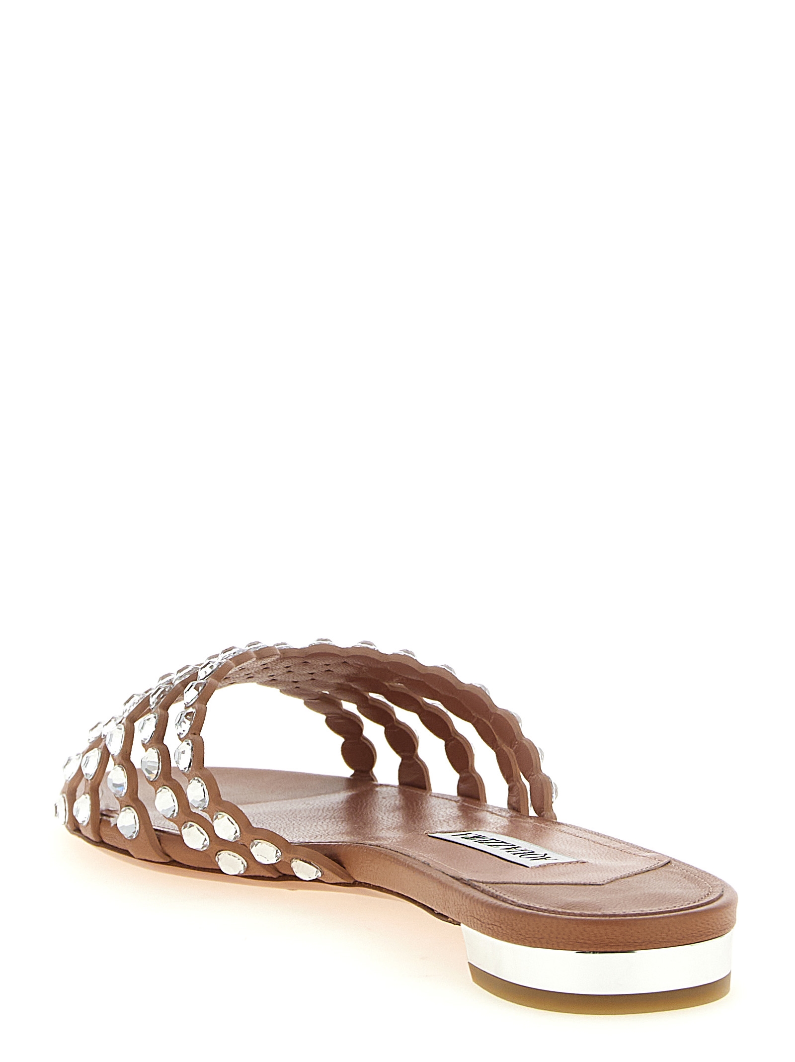 'Tequila' smooth nappa leather slides with crystals on the toe strips, leather sole with rubber heel.