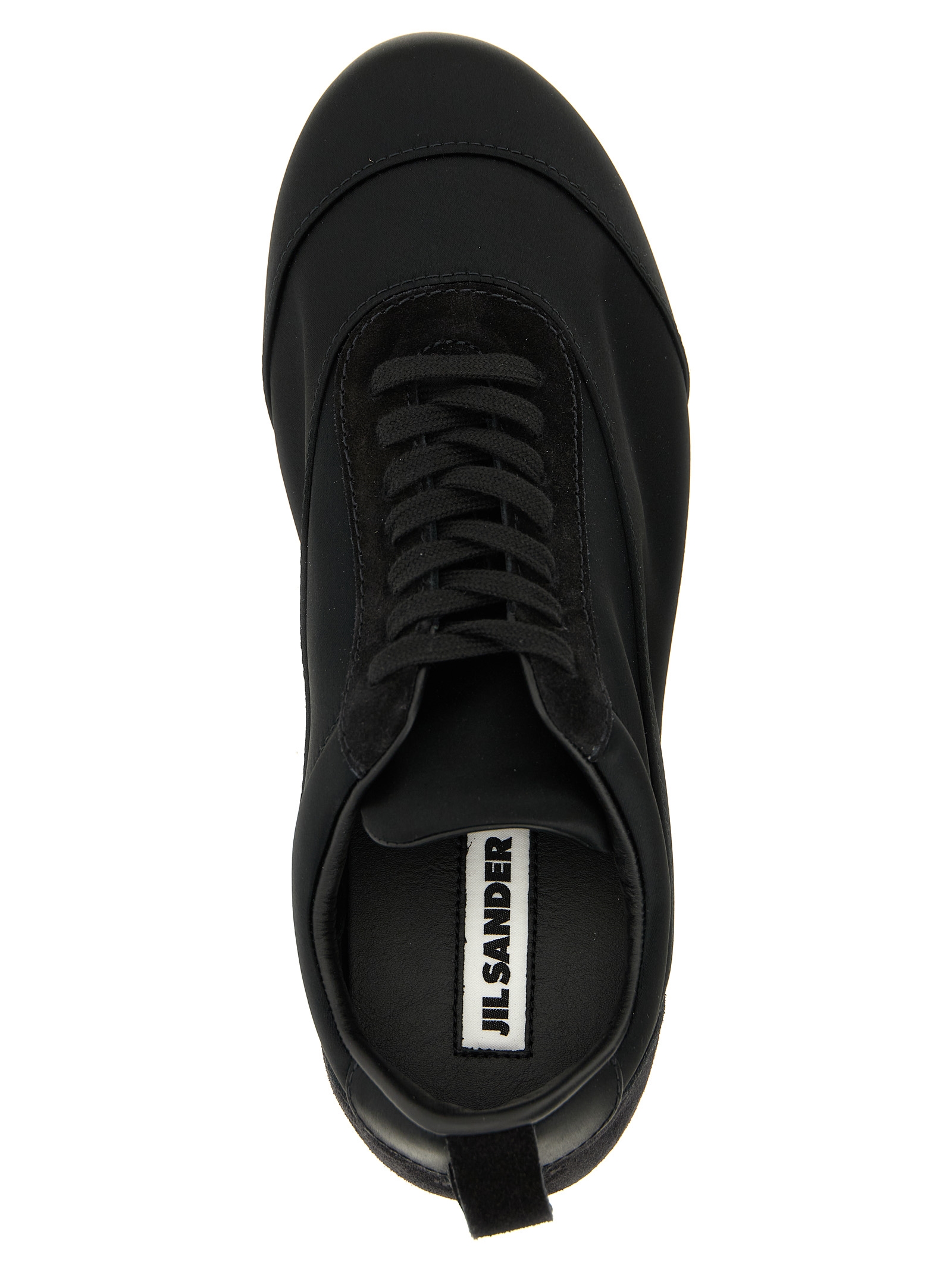 'Etage' tone-on-tone satin and suede sneakers, round toe, embossed logo on the heel, lace-up closure, rubber sole.