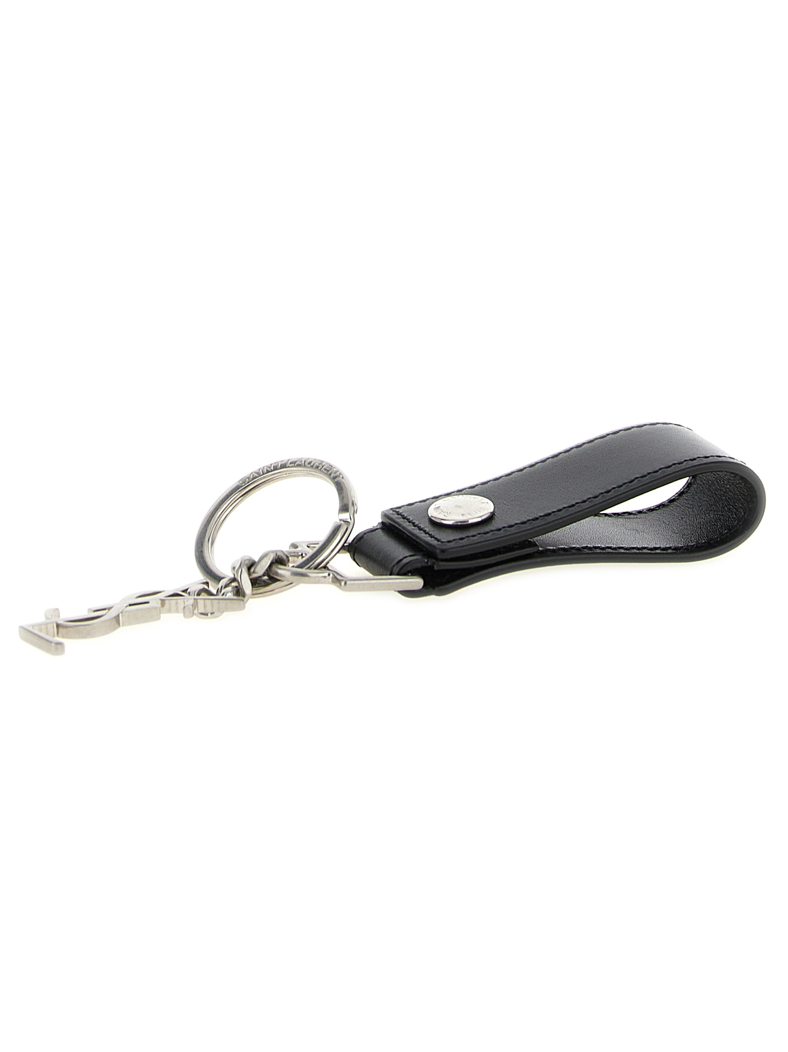 Leather key ring with snap fastener and 'Cassandre' metal charm.