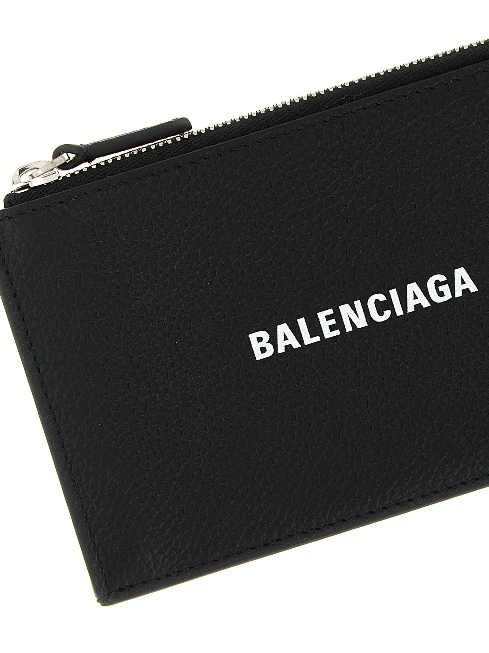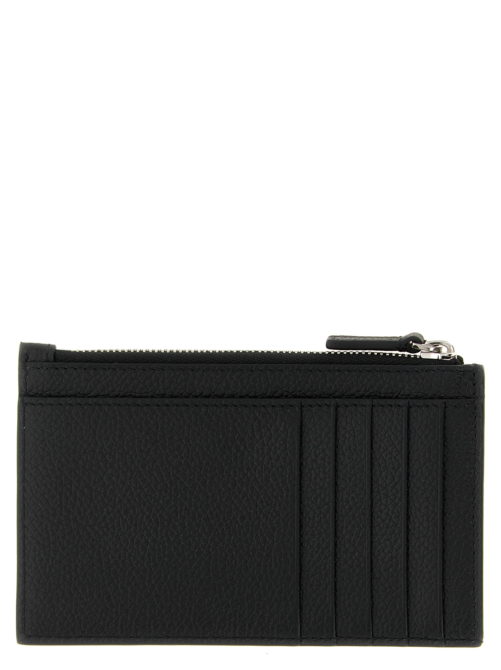 Cash' grained calf leather card holder with logo print and a zip closure.