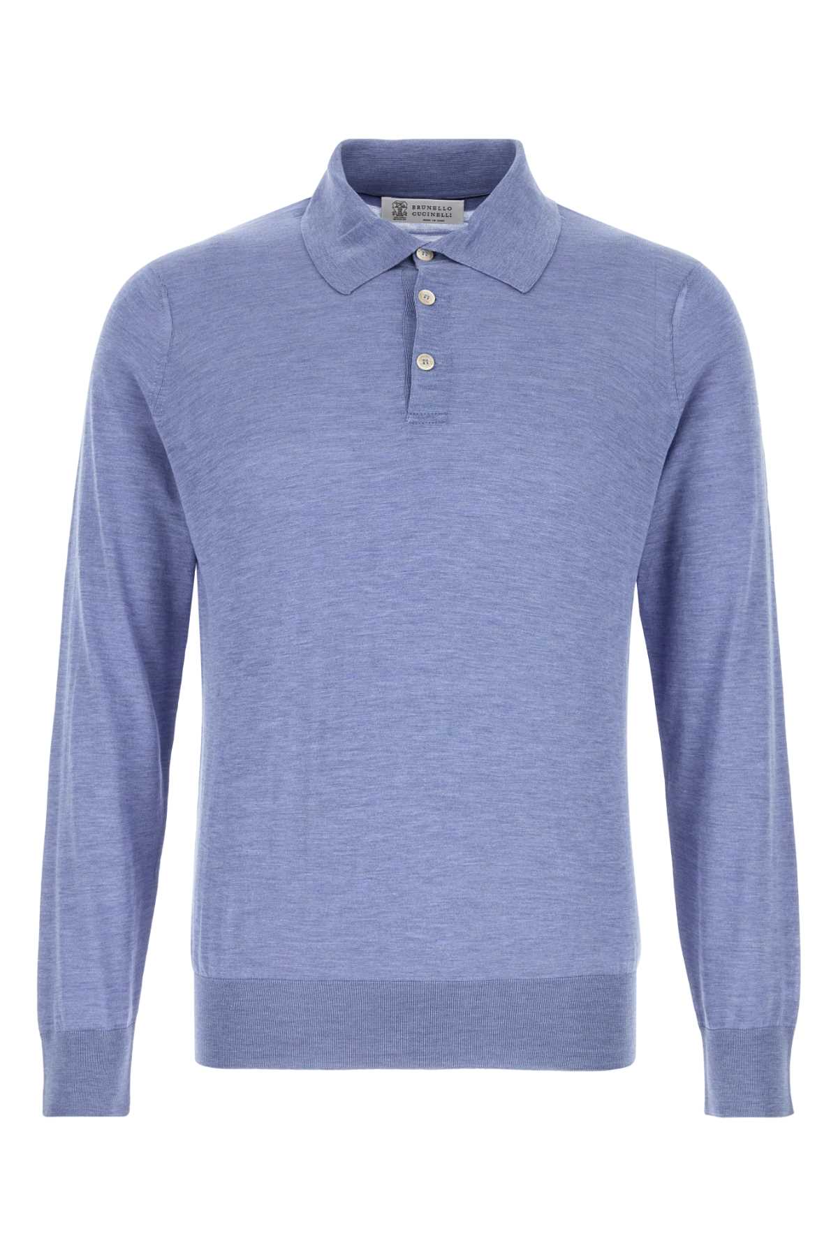 Поло из шелковой смеси цвета лазурной синевы BRUNELLO CUCINELLI (MNB805415)