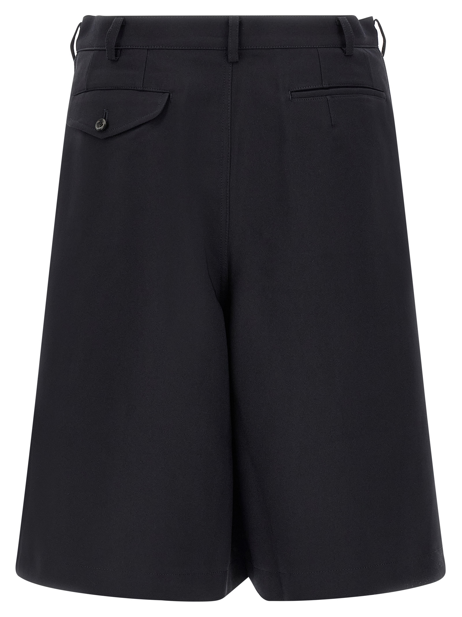 Bermuda shorts in herringbone fabric, front zip and button closure, wide leg style, loops at the waist, side pockets, side zip inserts, back welt pockets with flap and button.