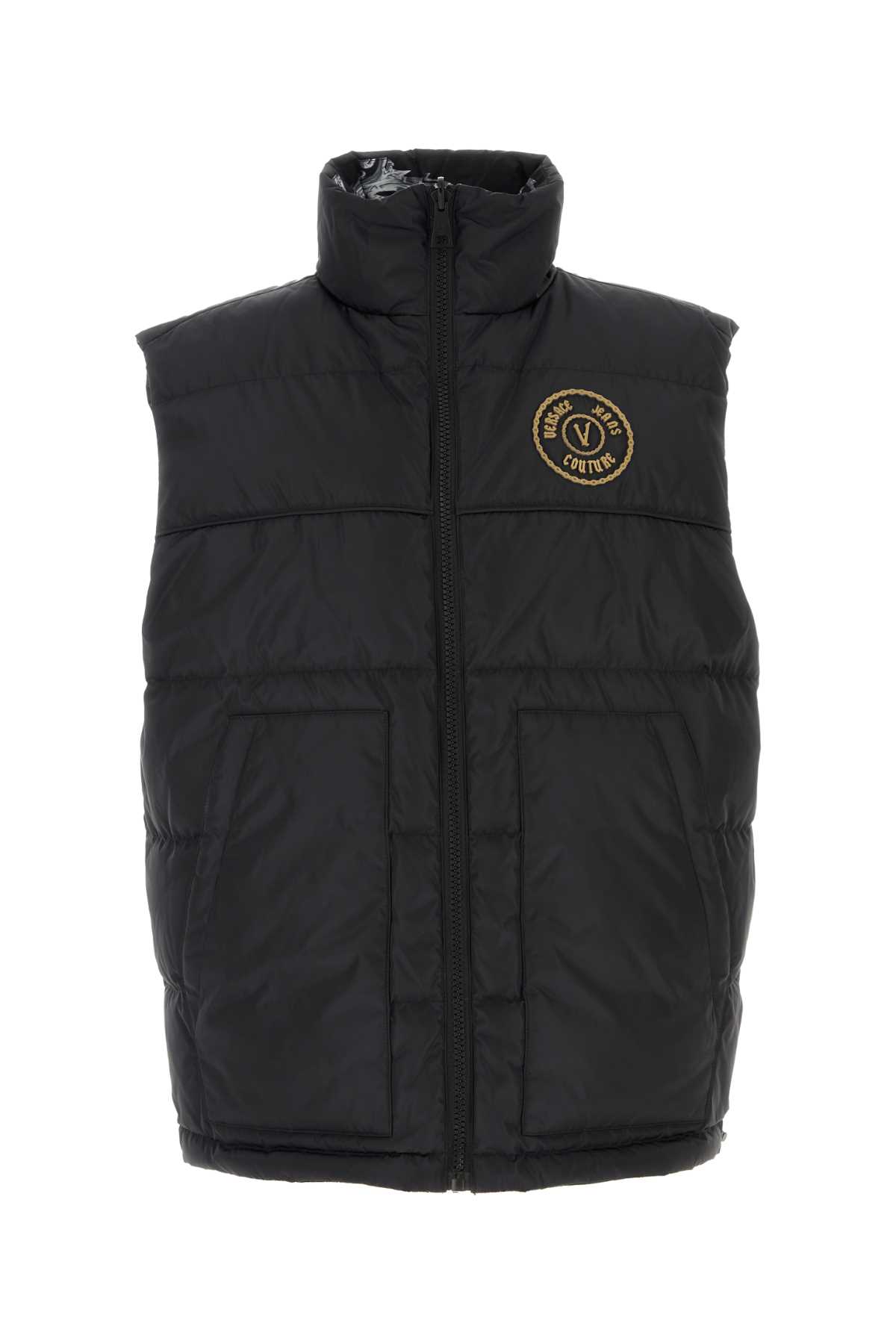 Black polyester reversible sleeveless down jacket VERSACE JEANS (77GAPD22CQD54)