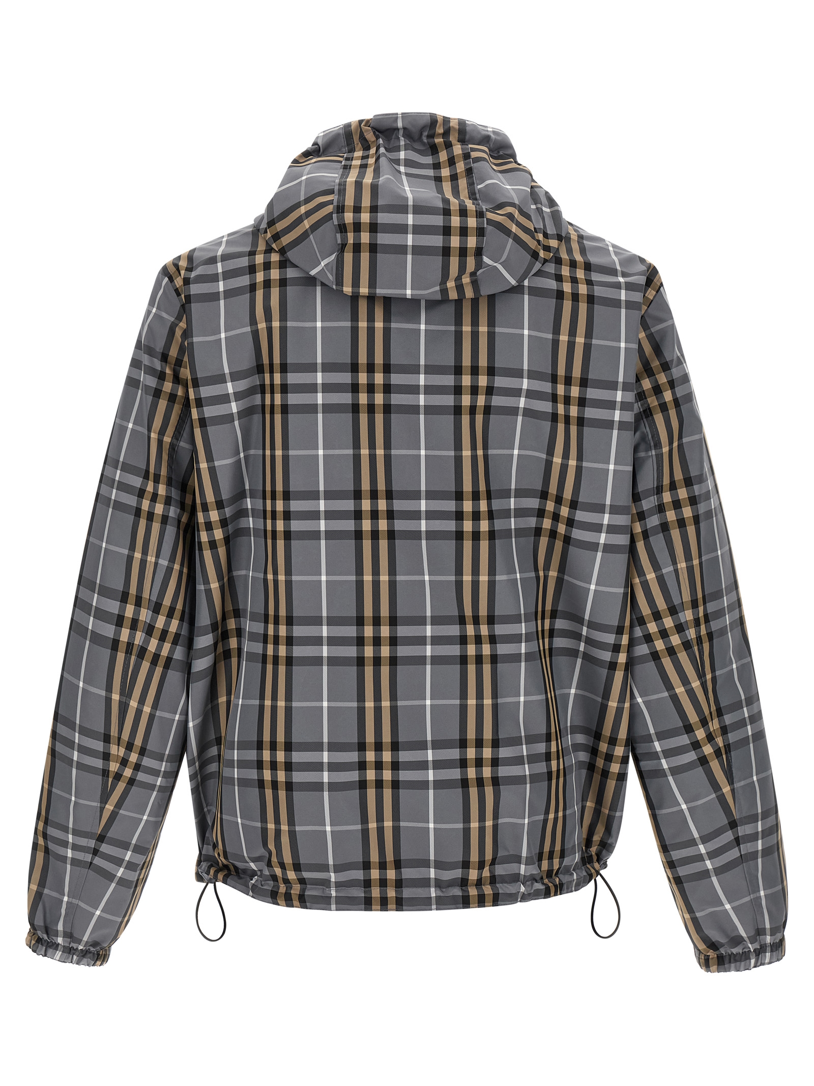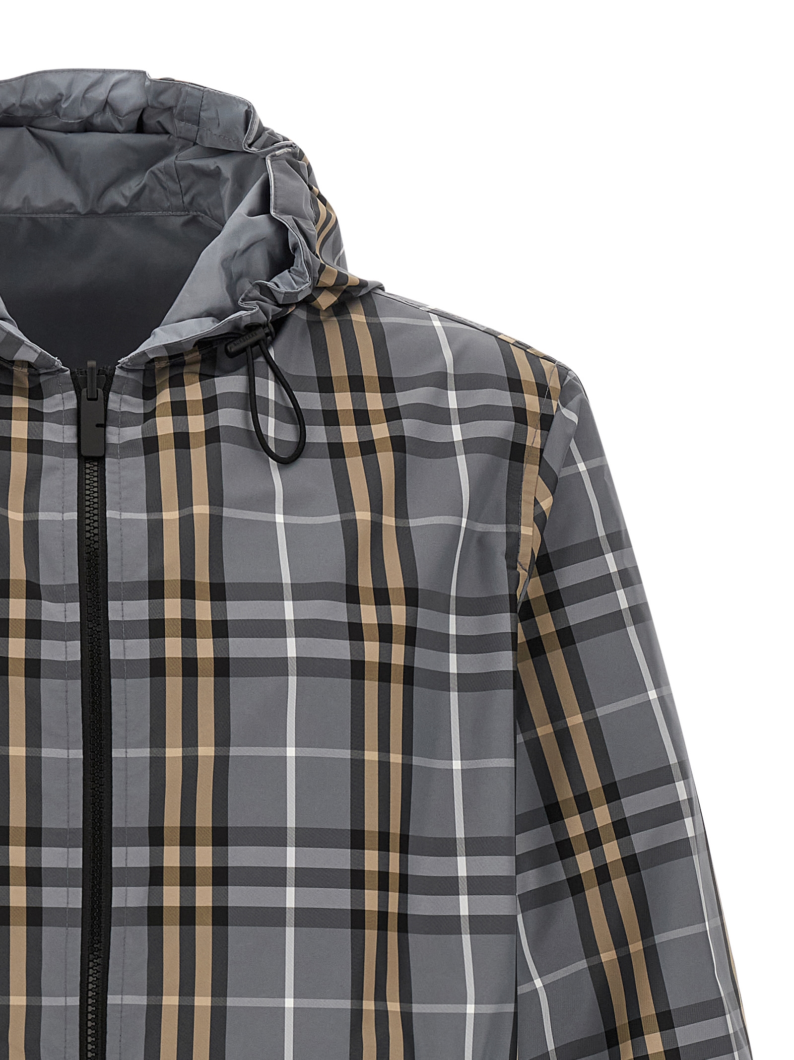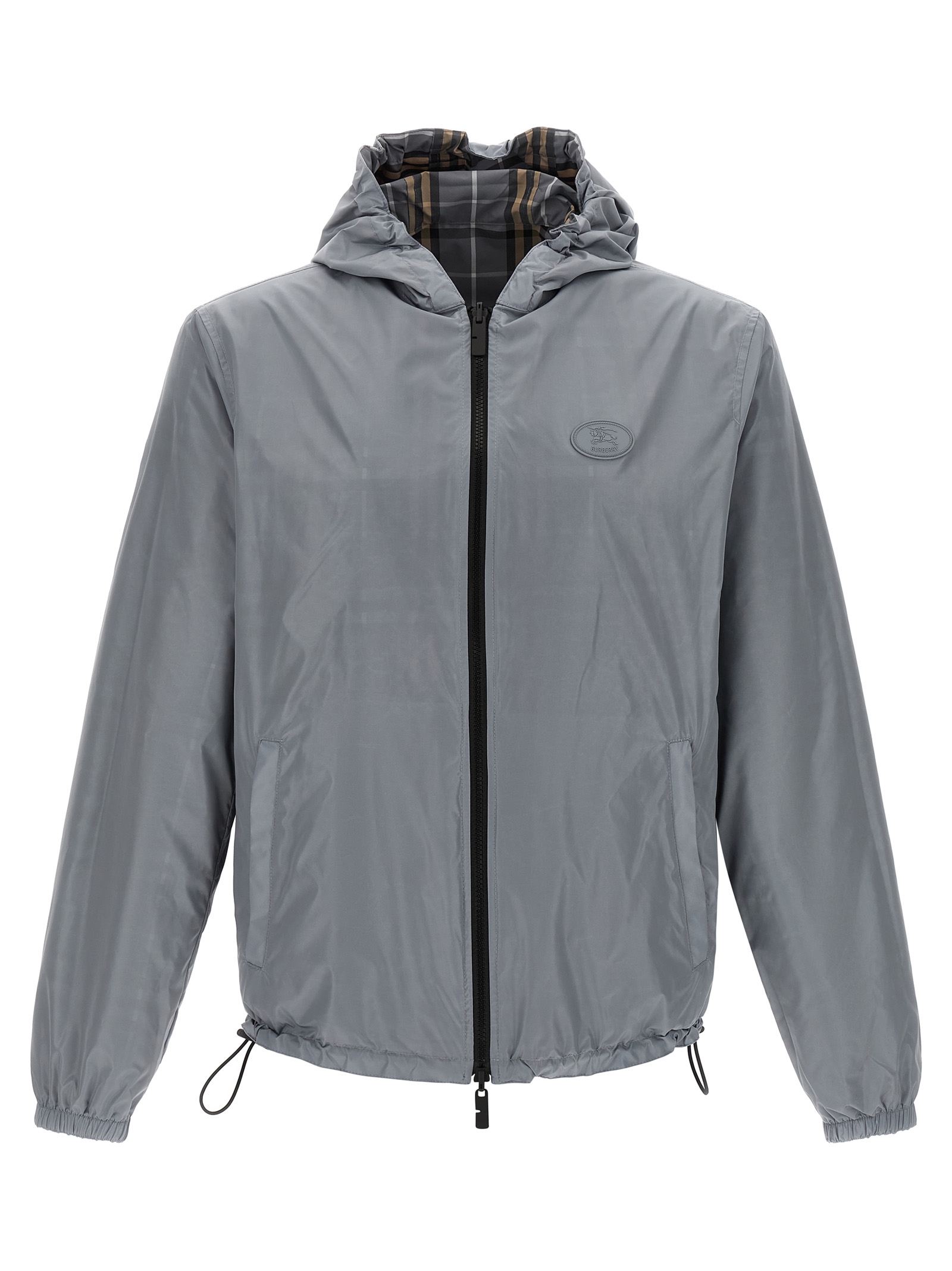 Solid and woven nylon 'Newport' reversible jacket with Burberry Check, adjustable hood, tonal 'Knight Stamp' patch, high neck, front zip closure, pockets, long sleeves with elastic cuffs, drawstring at the hem.