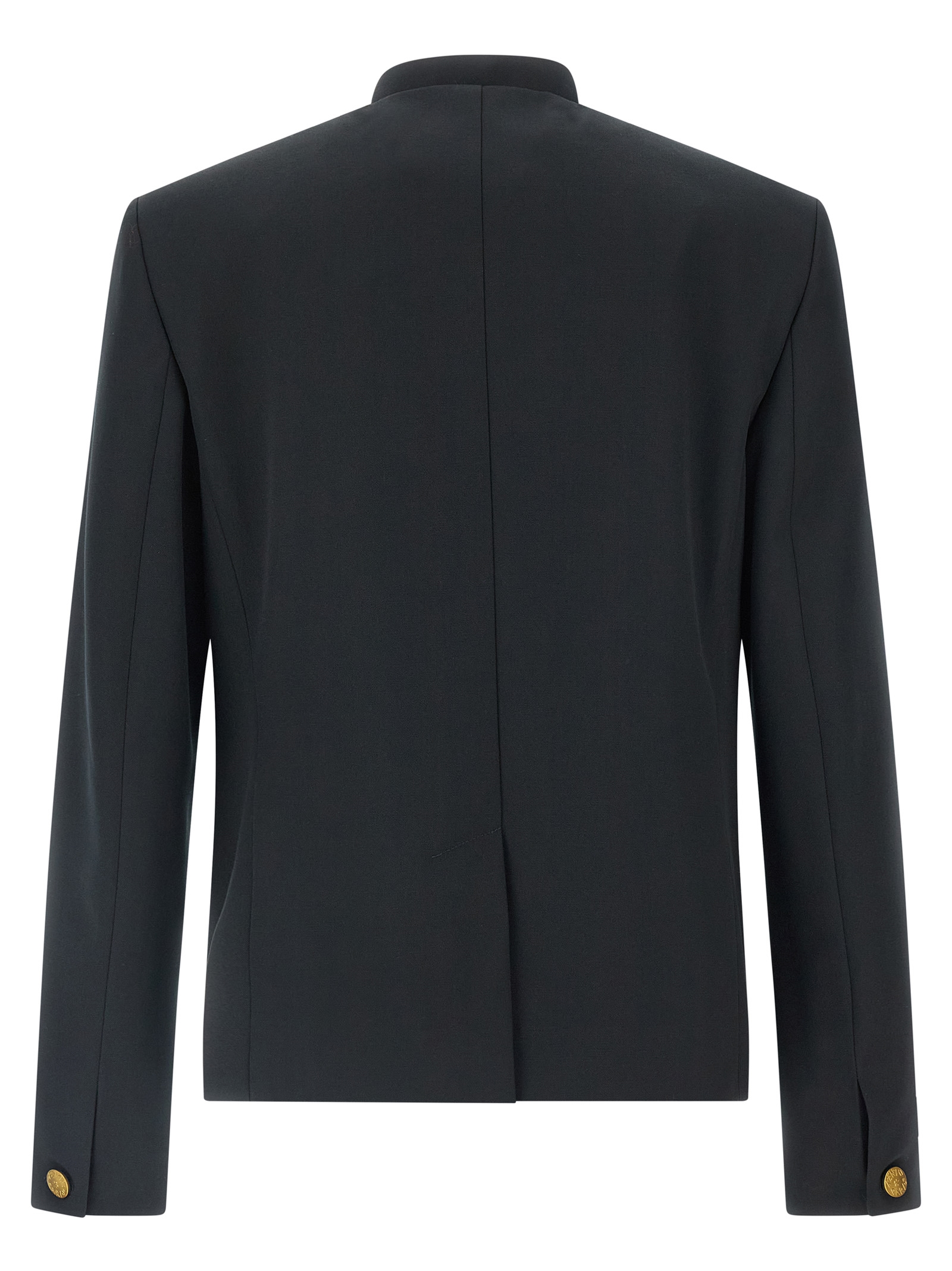 Шерстяной пиджак School Boy с воротником-мандарином, застежкой спереди на металлические пуговицы, карманами спереди, длинными рукавами с пуговицами.