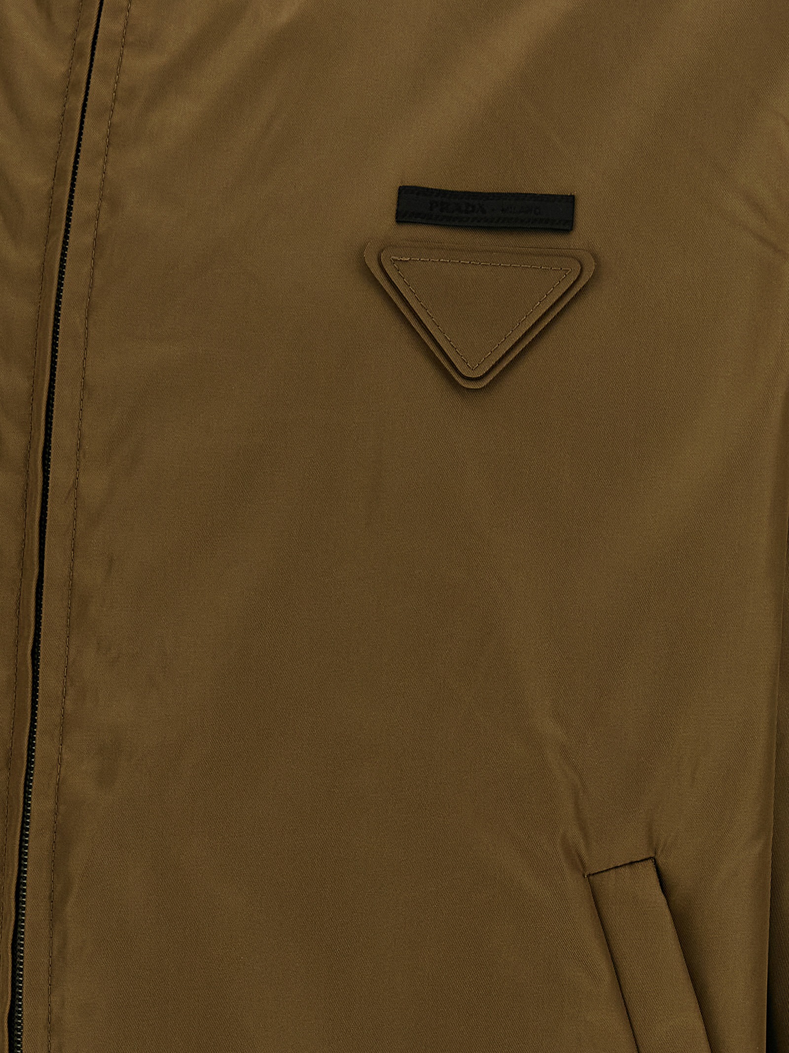 Re-Nylon anorak with cotton lining, patch and triangle logo in tone-on-tone fabric on the front, hood, zip closure, pockets, long sleeves, drawstring on the hem.