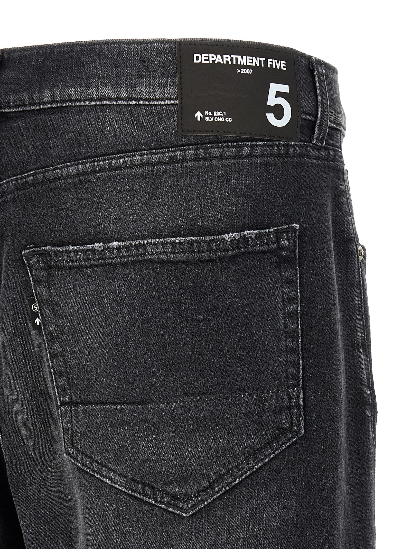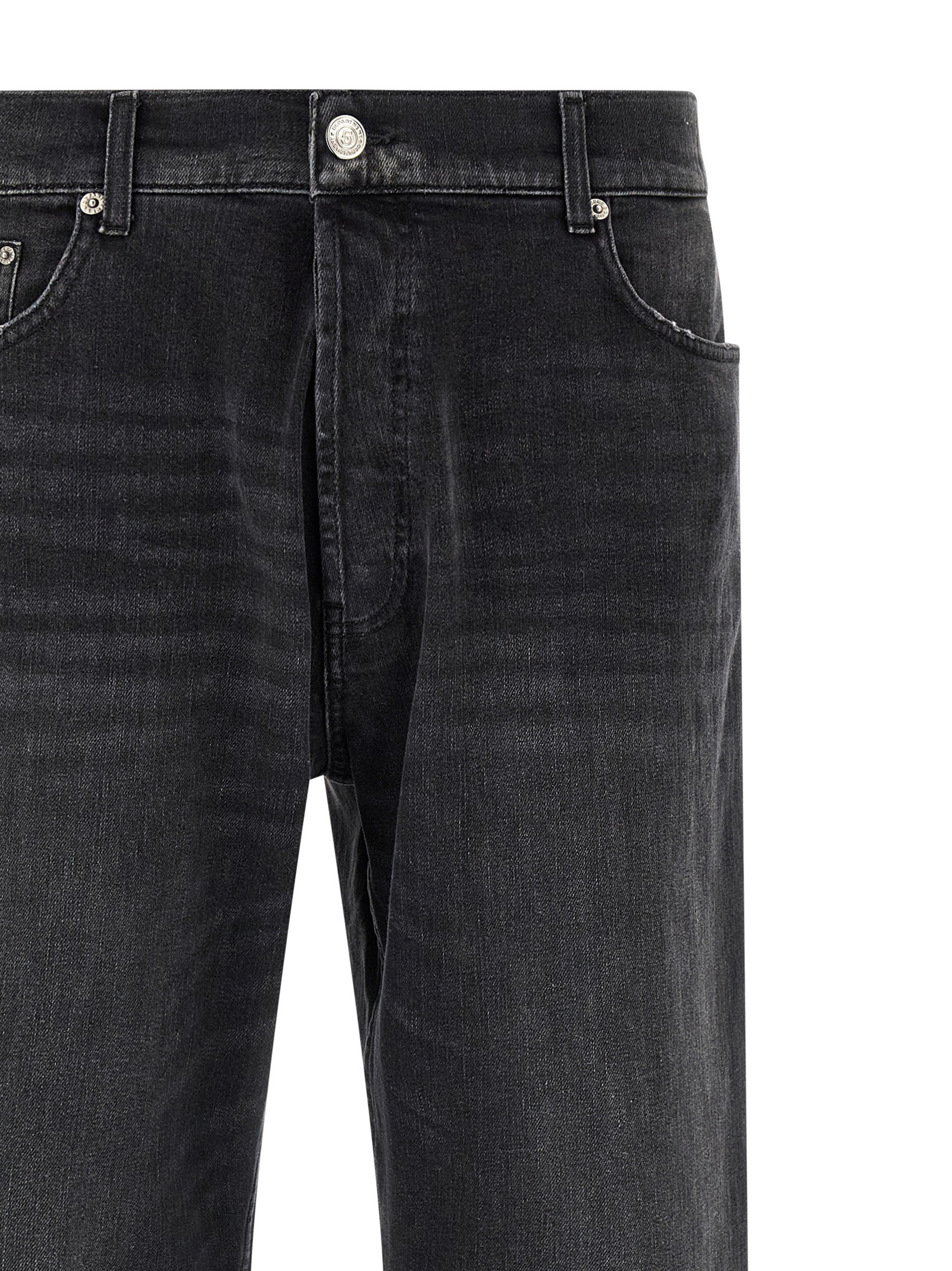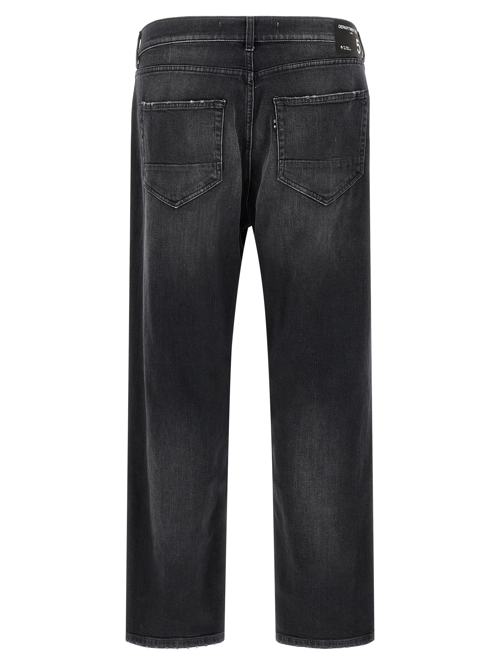 'Musso' used-effect stone-washed cotton denim jeans, crop model, wide and straight leg, front button closure, five pockets, back logo tag.