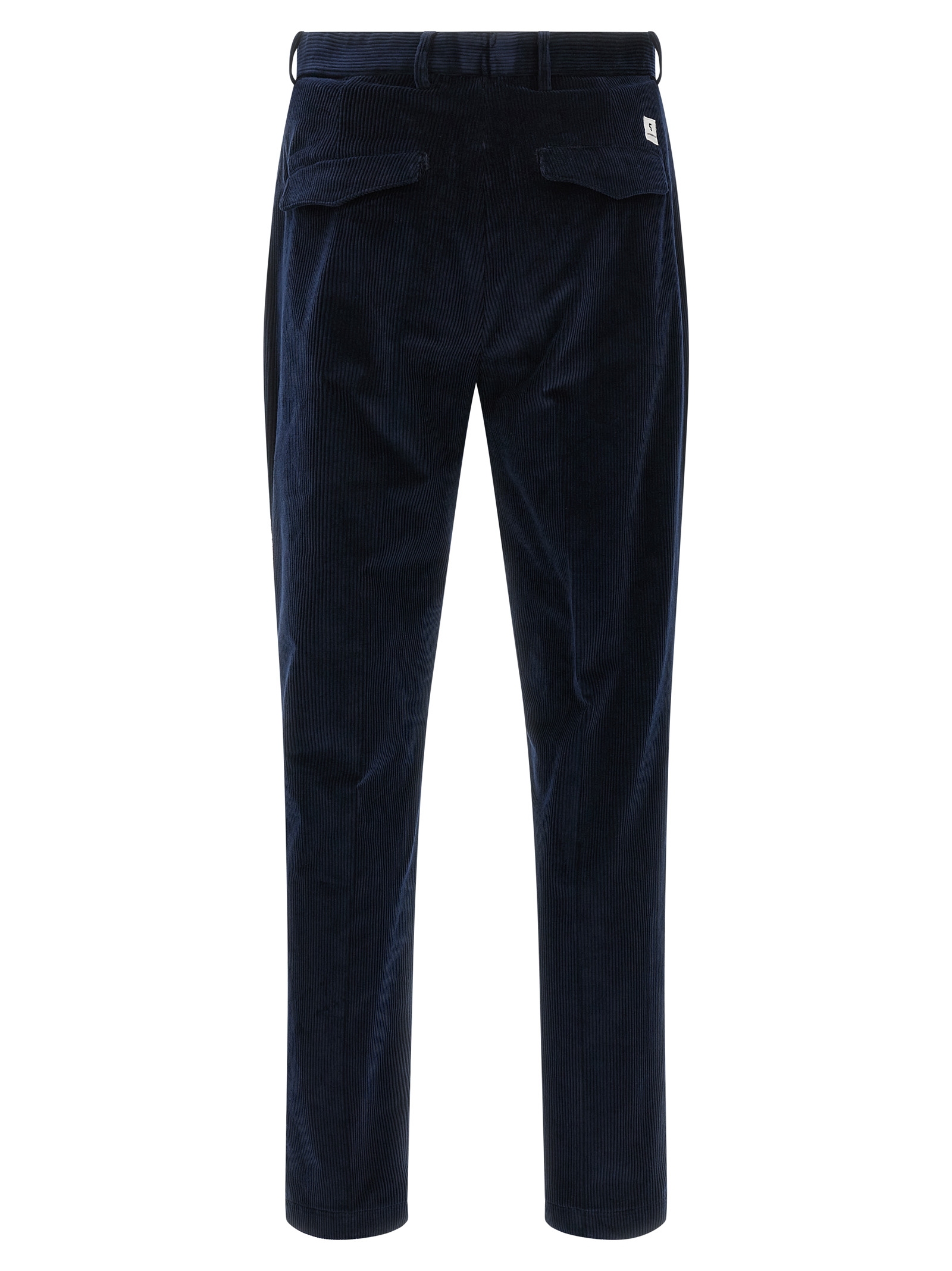Брюки из вельвета «Prince», укороченная модель, растянутые складки, застежка на молнию и пуговицу спереди, карманы, логотип на спине.