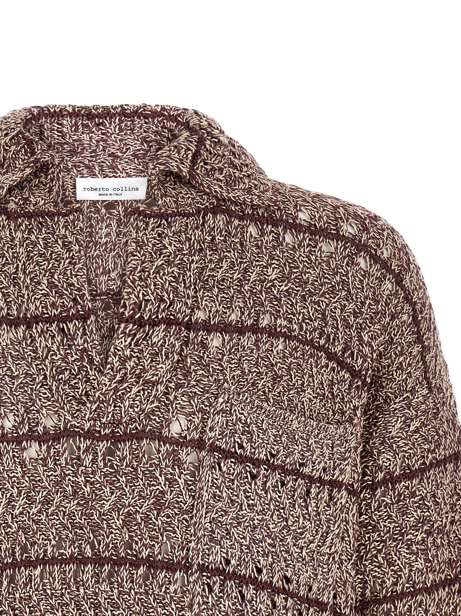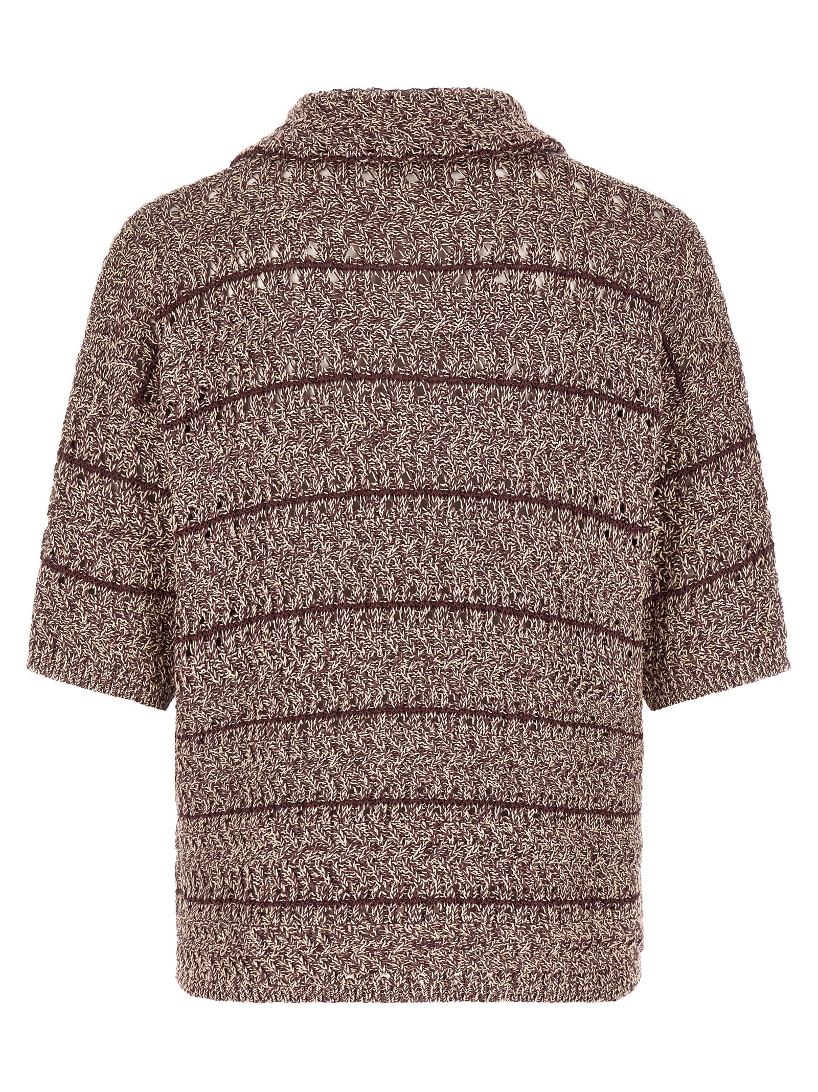 'Moliné' texture stitch knitted polo shirt, mesh knit with different threads, pointed collar and V-neck, front pocket, ribbed trim on the bottom and sleeves.