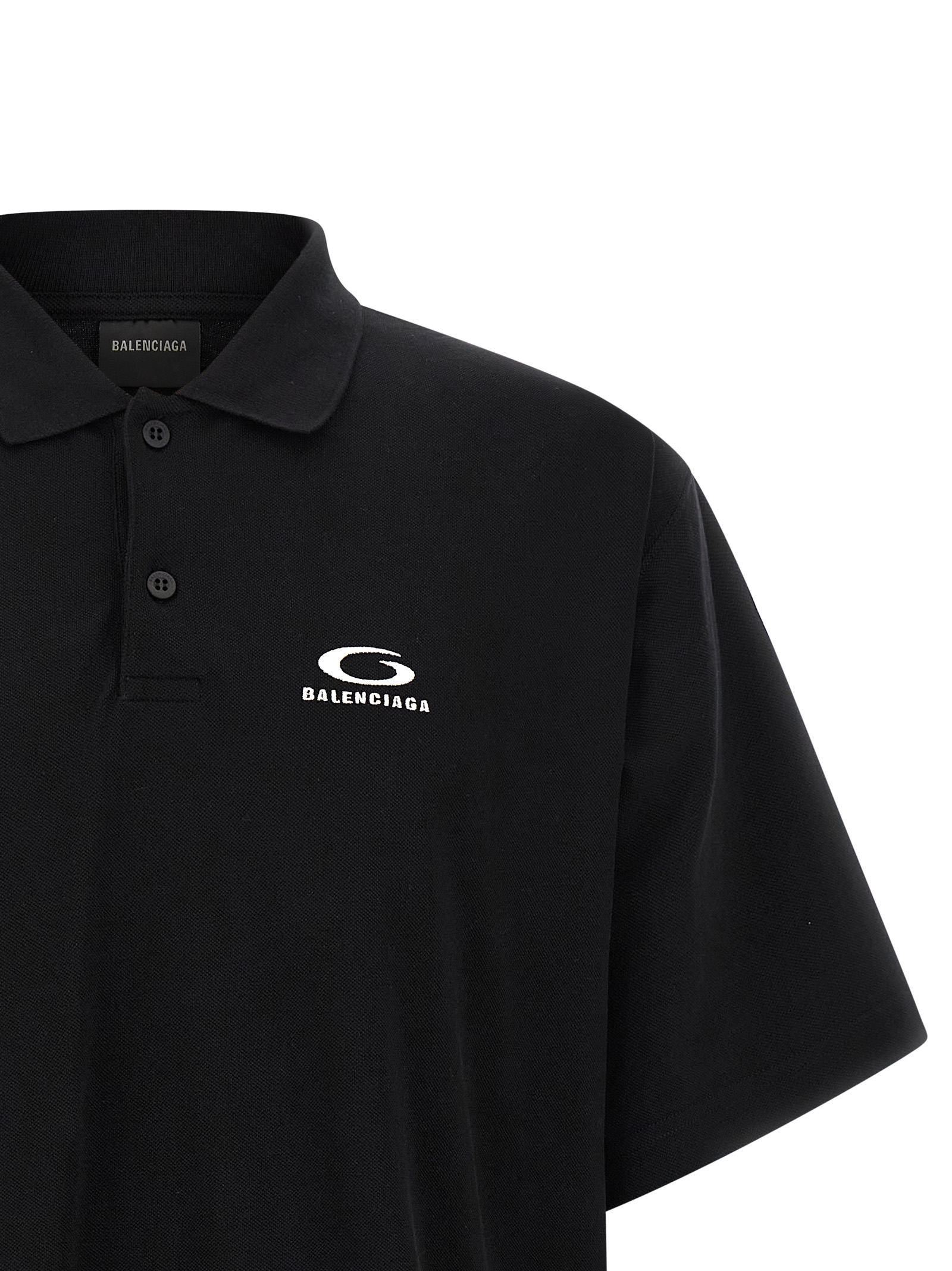 Хлопковая рубашка-поло из пике с вышивкой «Laurel Classic» на груди, воротником и пуговицами, короткими рукавами, боковыми разрезами и асимметричным подолом.