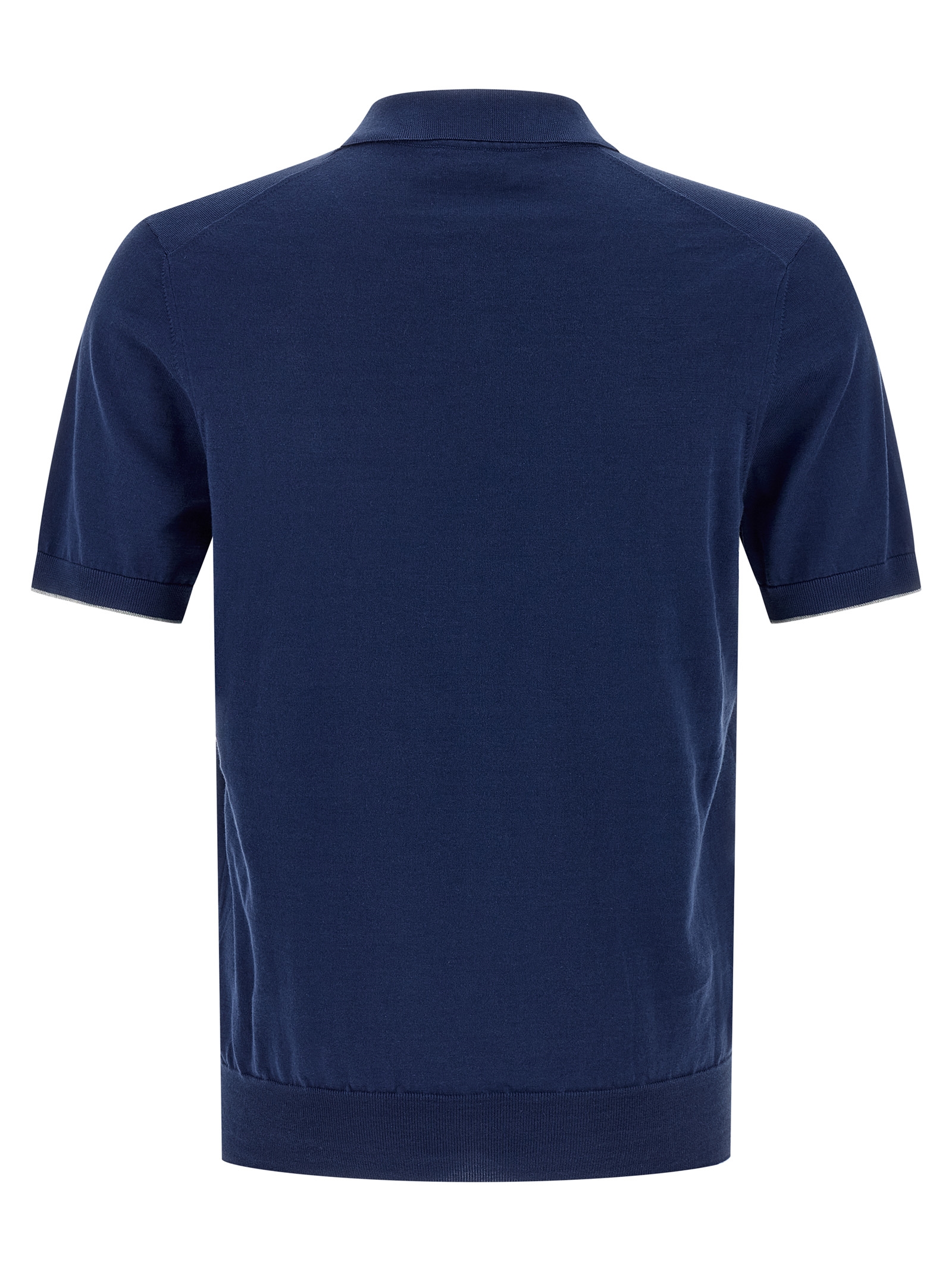 Light cotton polo shirt with collar, V-neck, short sleeves with contrasting piping, and band on the hem.