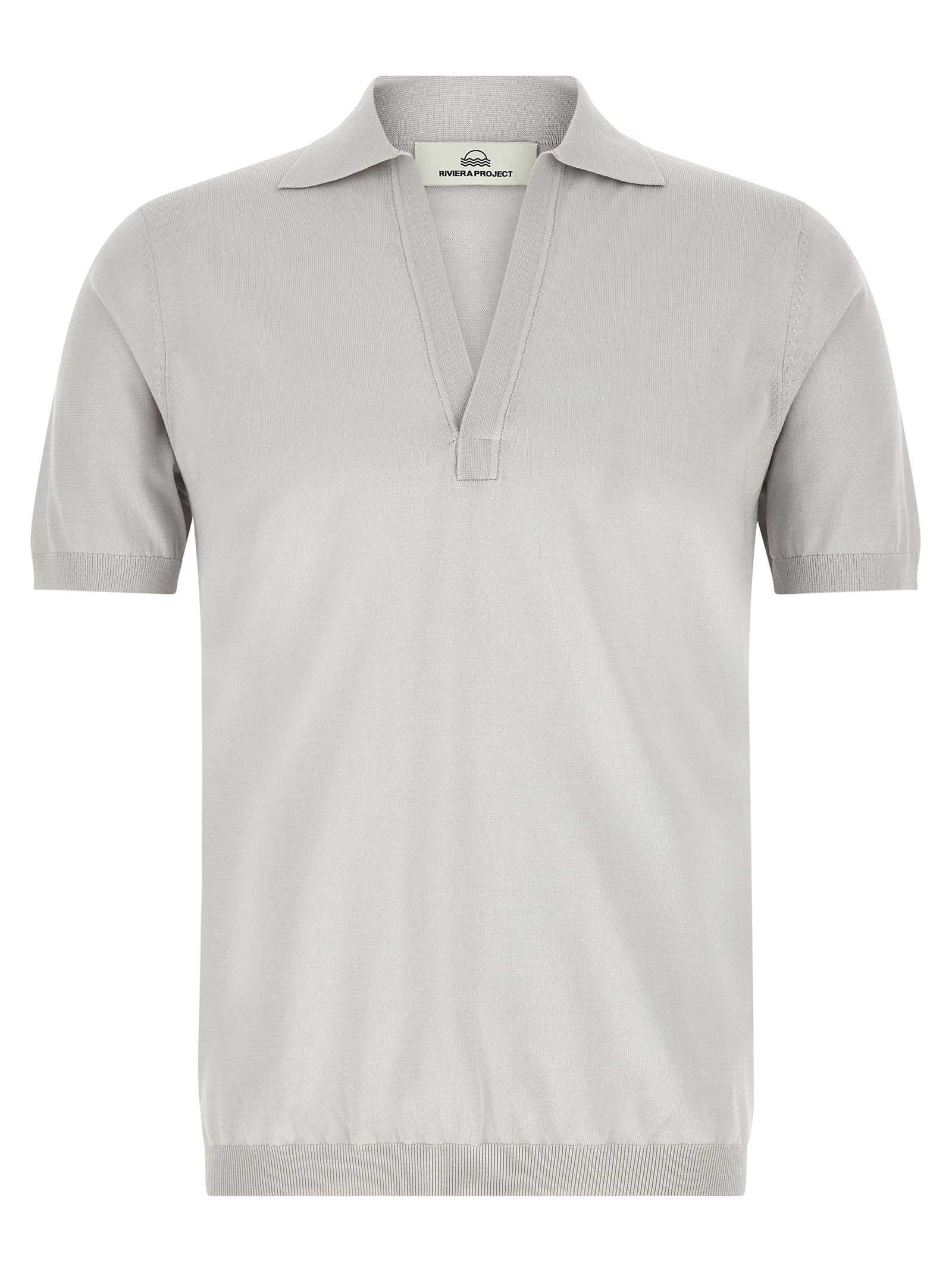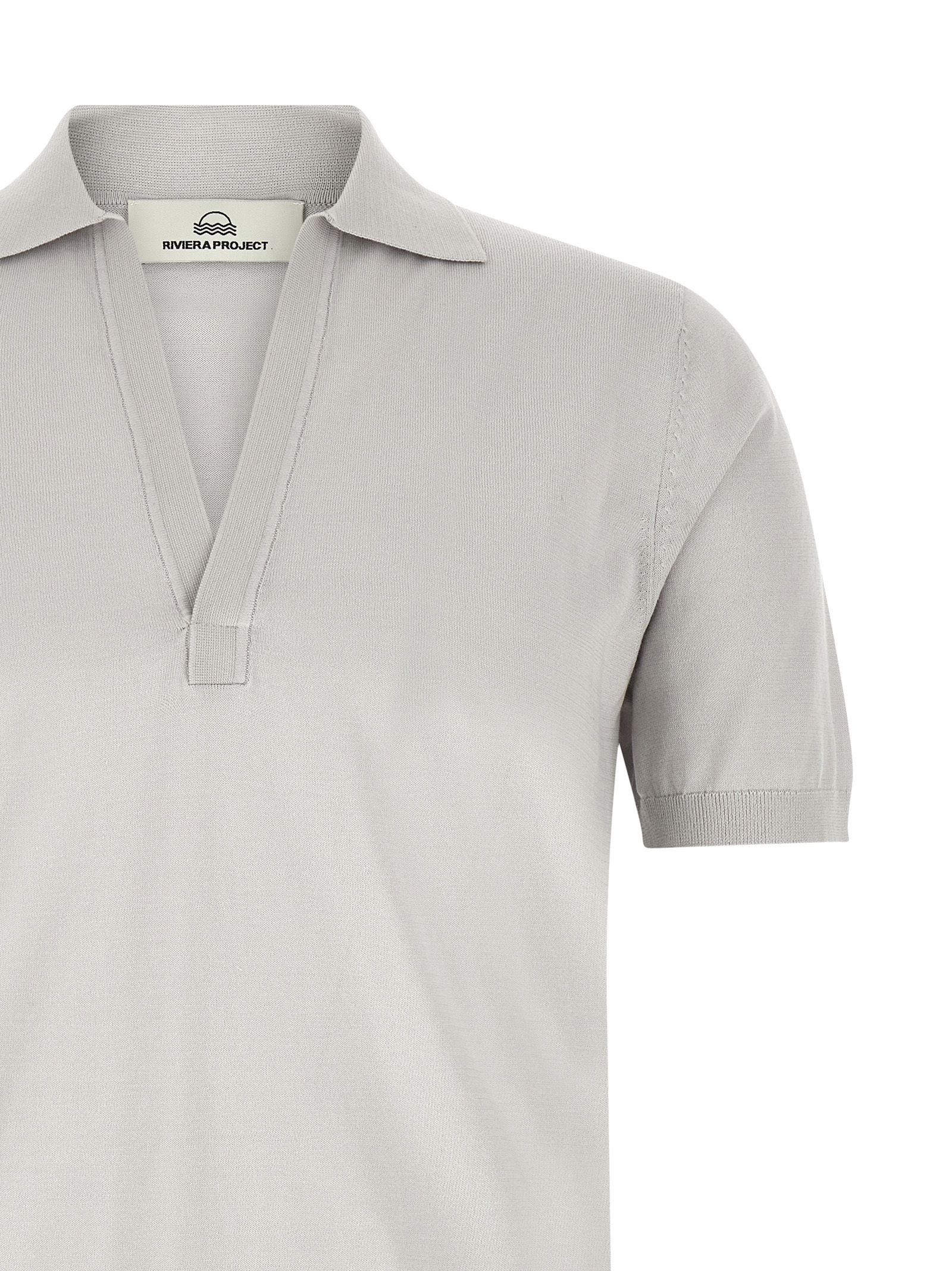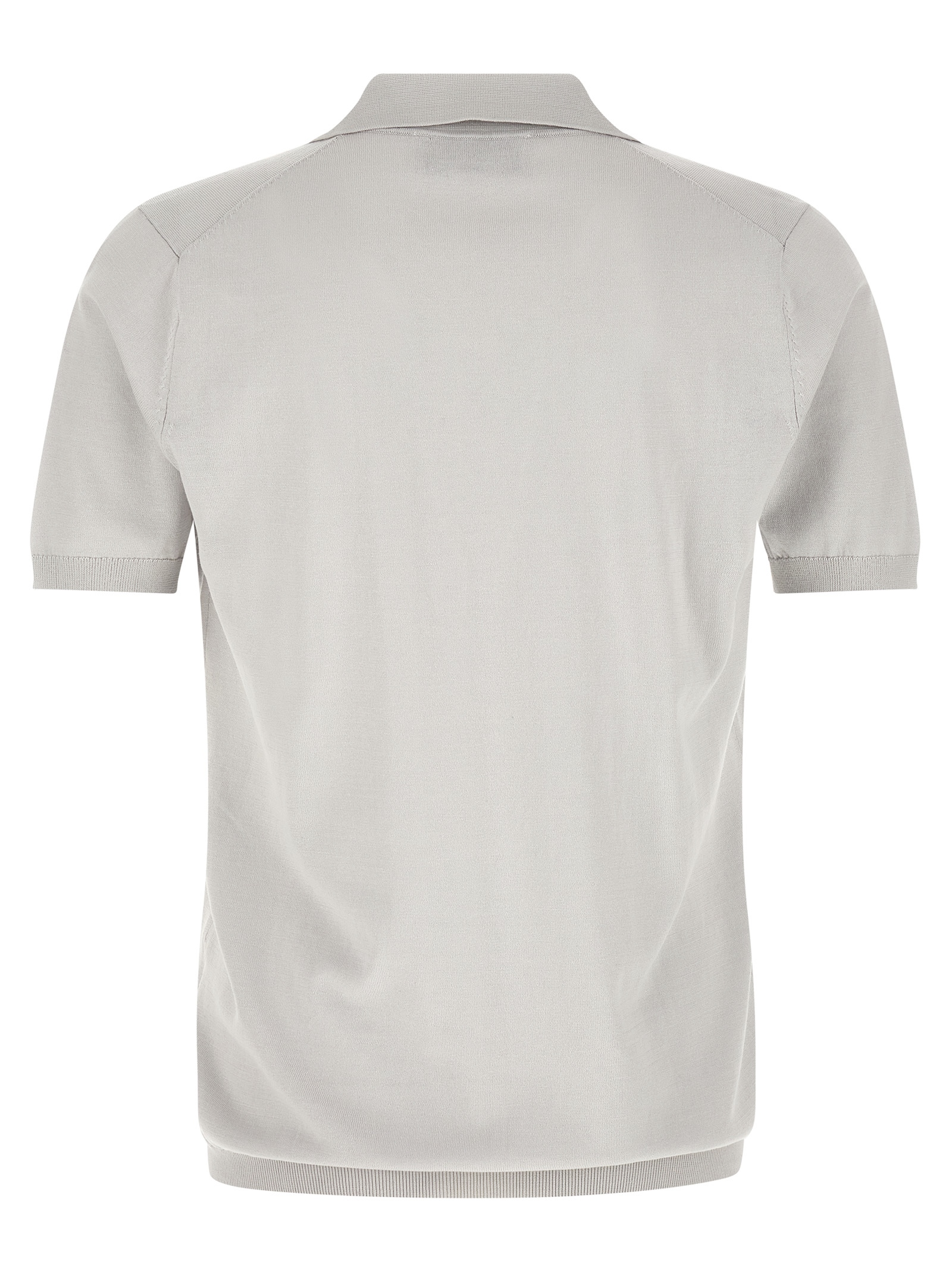 Polo shirt in viscose, cotton and wool blend, open collar, short cuffed sleeves.