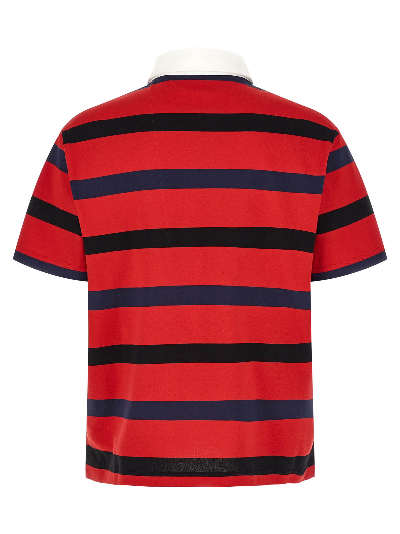Striped cotton polo shirt, tone-on-tone embroidered logo on the front, poplin shirt collar contrasting with internal wire, concealed mother-of-pearl button closure, short sleeves with dropped shoulders, side slits on the hem.