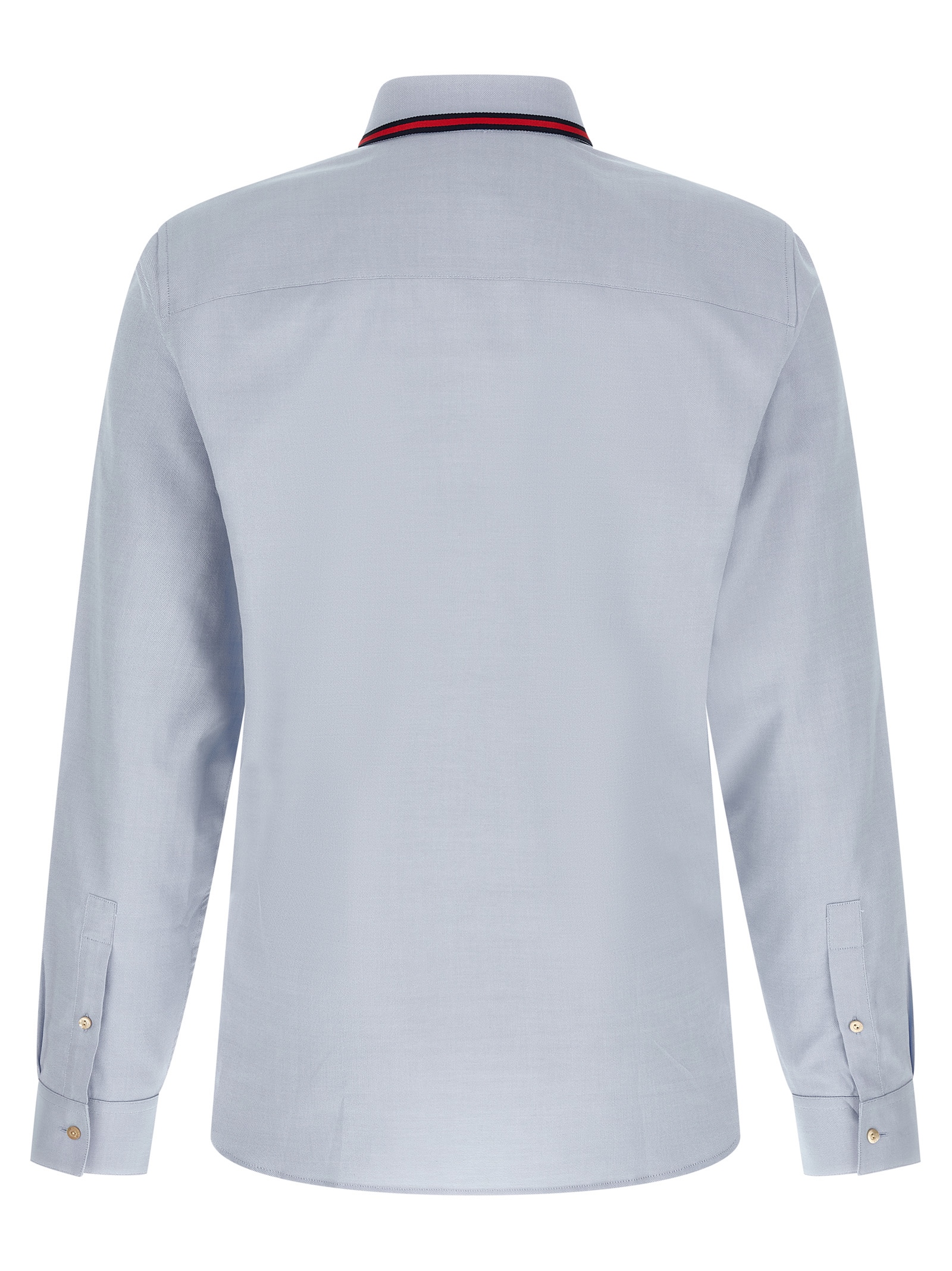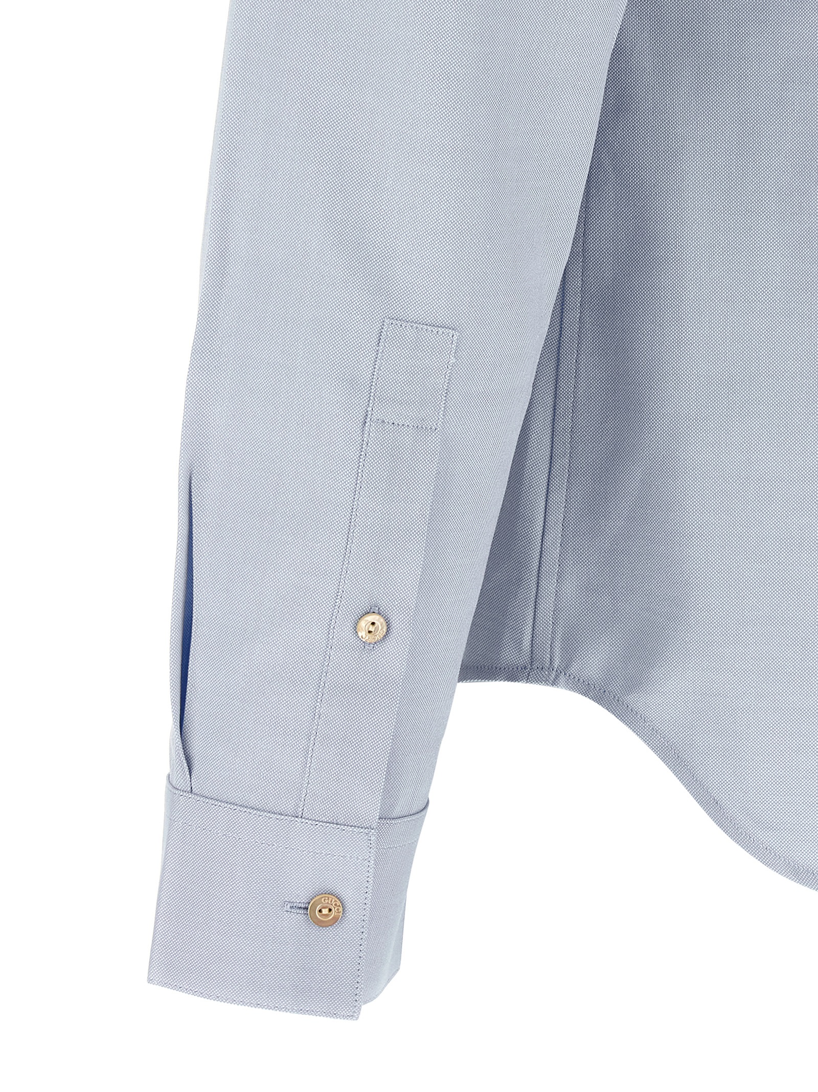 Oxford cotton shirt with pointed collar with 'Web' finish, breast pocket, front mother-of-pearl button closure, long sleeves with cuffs and slightly dropped shoulder, rounded hem.