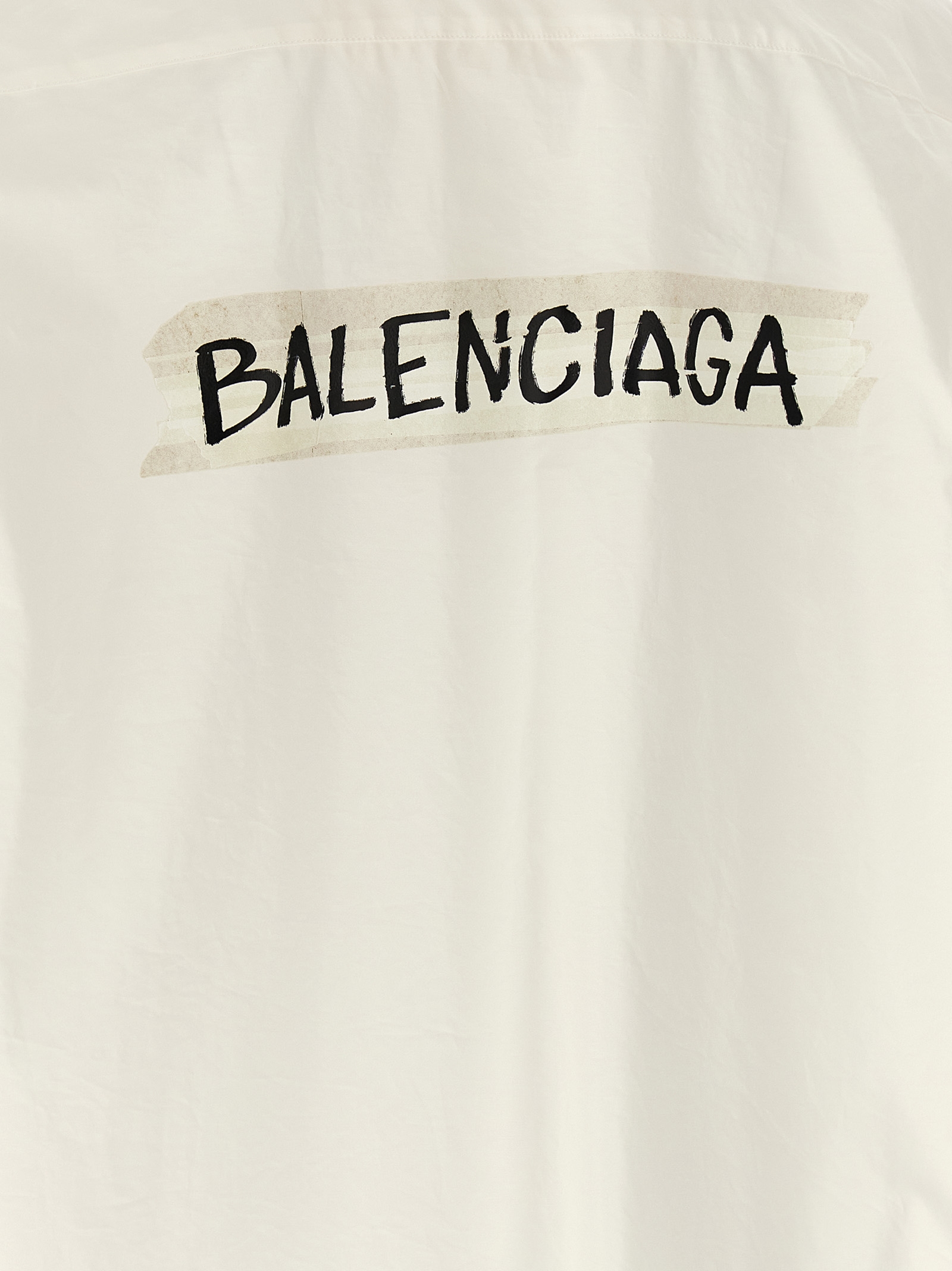 Хлопковая рубашка с пуговицами из поплина с принтом «Masking Tape» спереди и сзади, нагрудным карманом, застежкой на пуговицах спереди, длинными рукавами с манжетами и спущенными плечами.