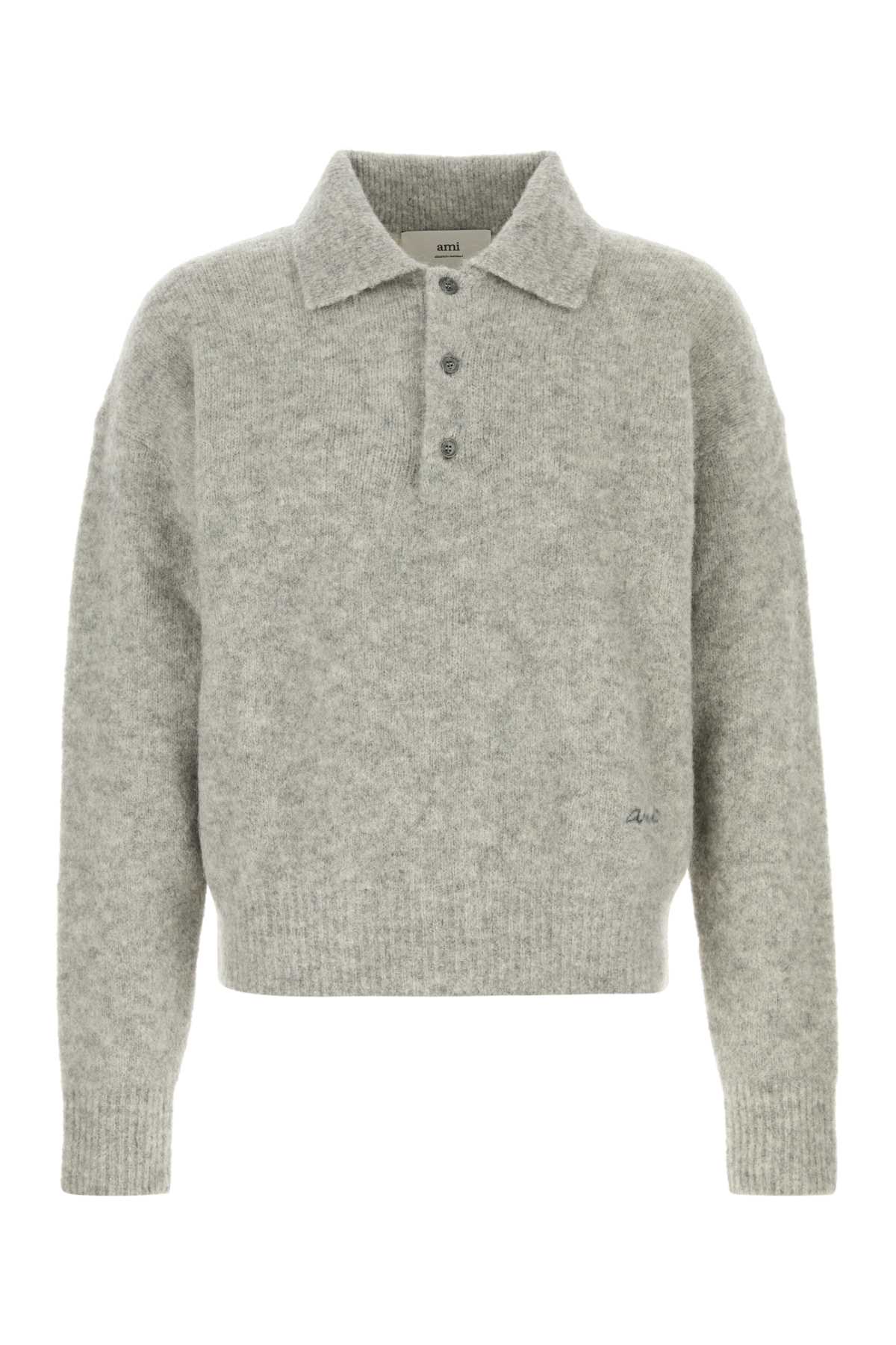 Grey stretch alpaca blend polo shirt AMI (HPL405KN0021)