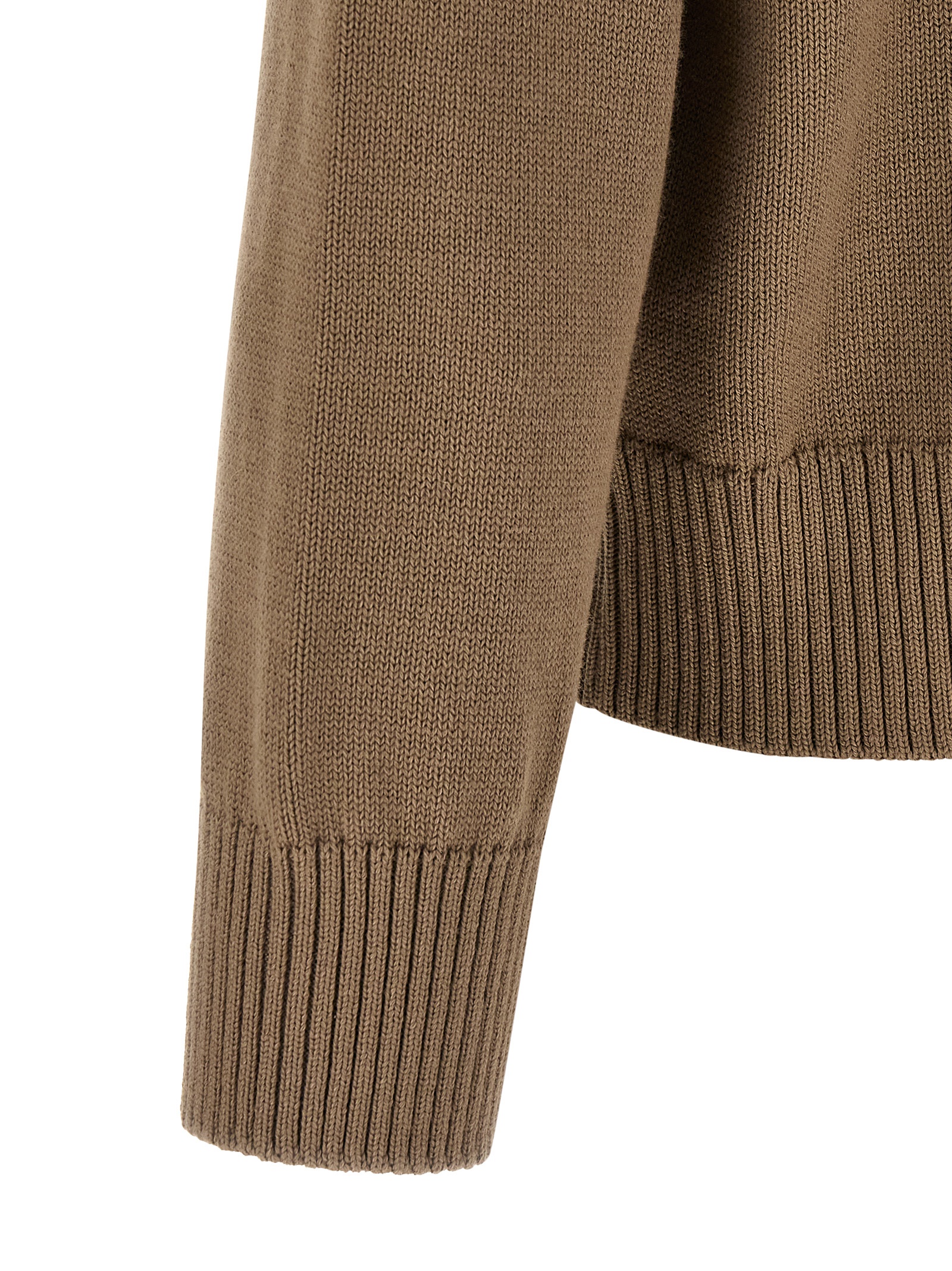 Knitted wool and cotton blend sweater with contrast 'Ami de Coeur' logo intarsia on the front, crew neck, long sleeves with cuffs and dropped shoulders, and band on the hem.