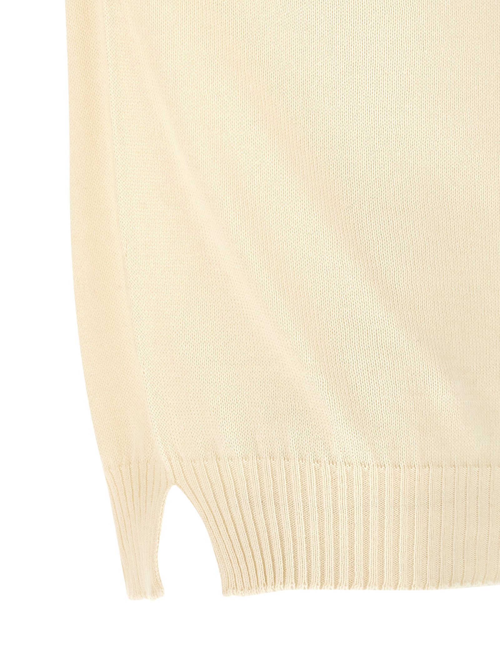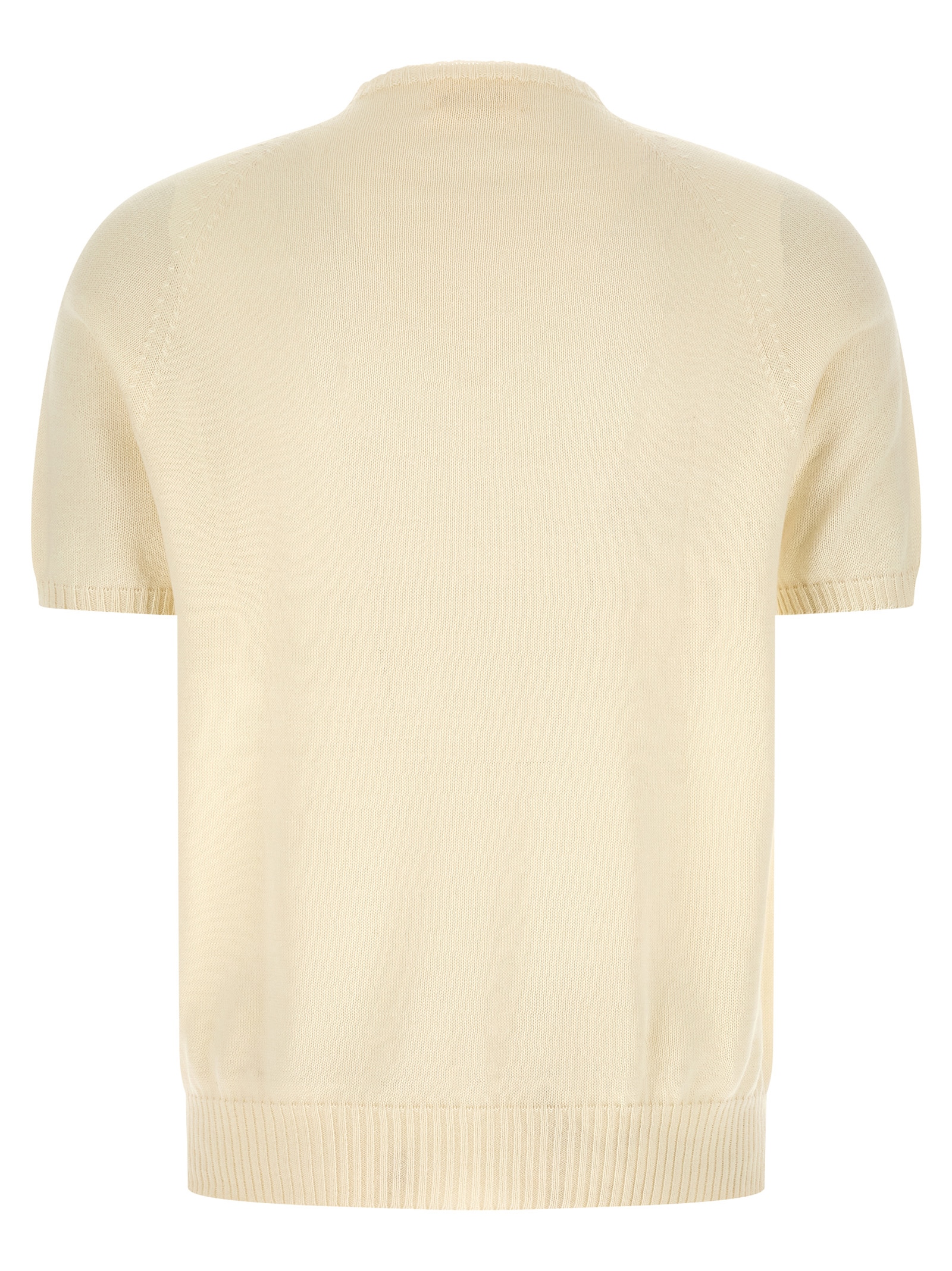 Cotton sweater with tone-on-tone ribbed details, crew neck, short raglan sleeves with cuffs, band and side slits on the hem.
