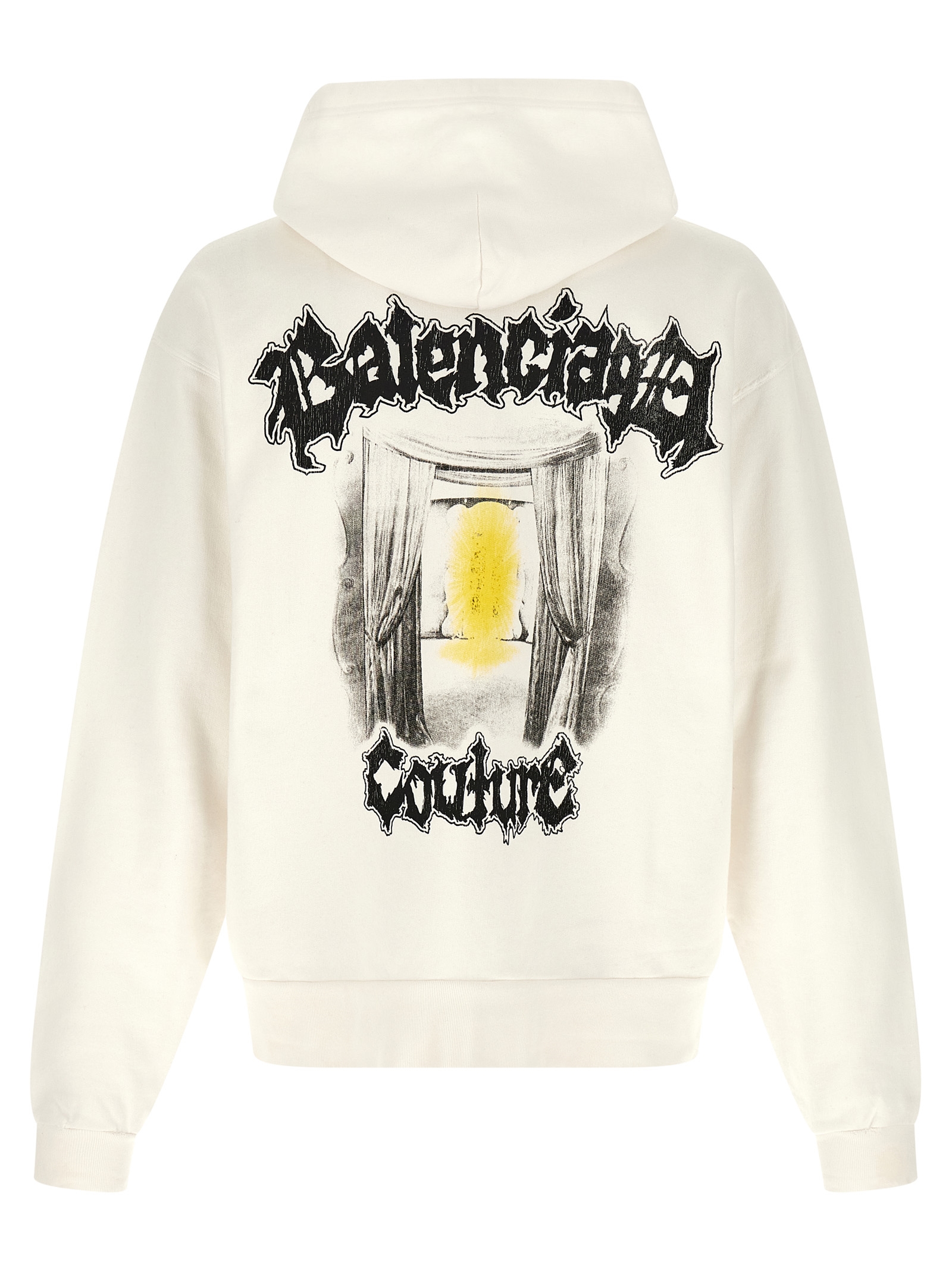 Dry used-effect jersey hoodie with 'Salon De Couture' print on the front and back, front zip closure, pockets, long sleeves with cuffs and dropped shoulders, and headband.
