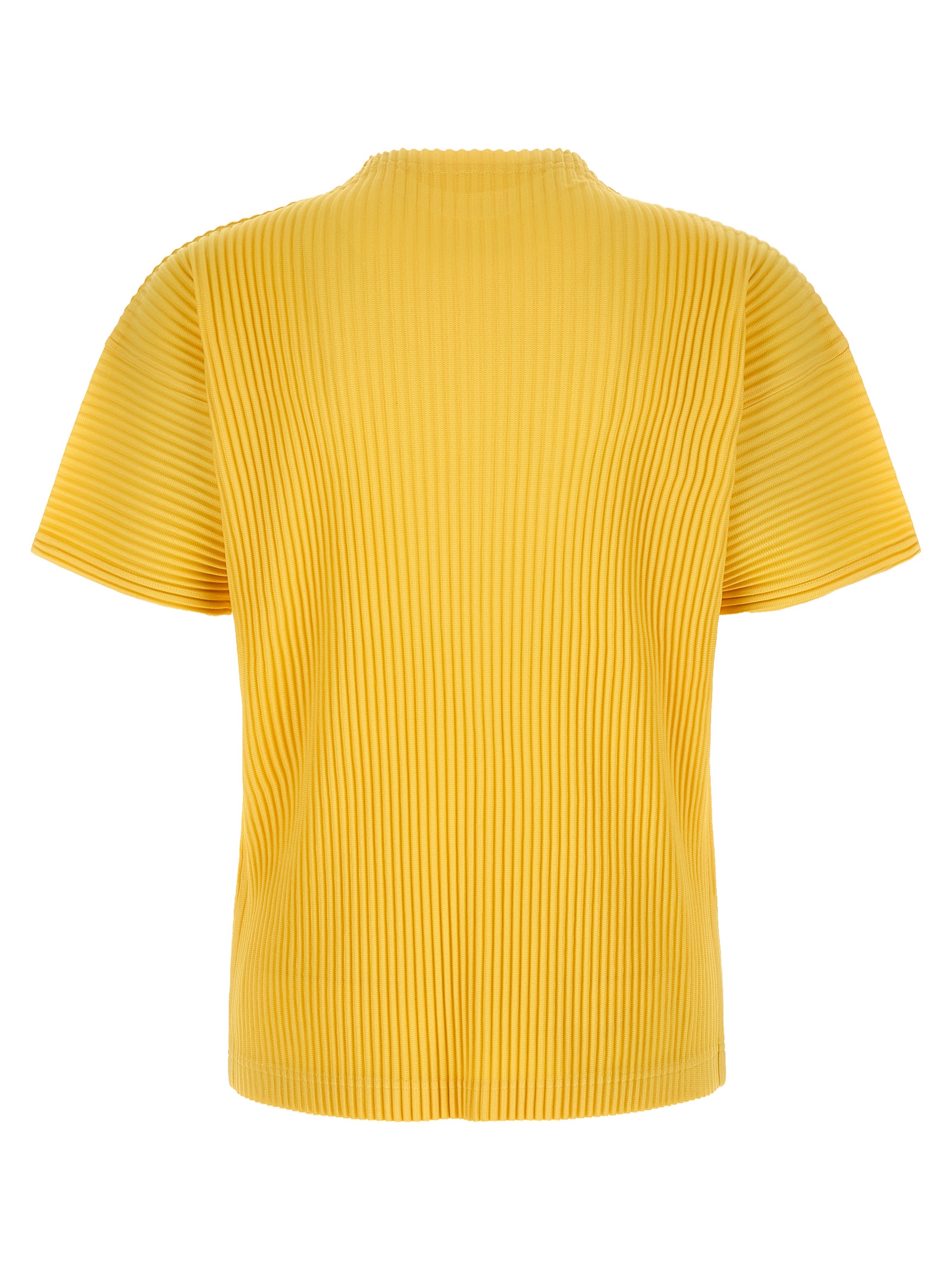 'Monthly Colors: March' pleated top with crew neck with side splits, dropped shoulder, short sleeves.