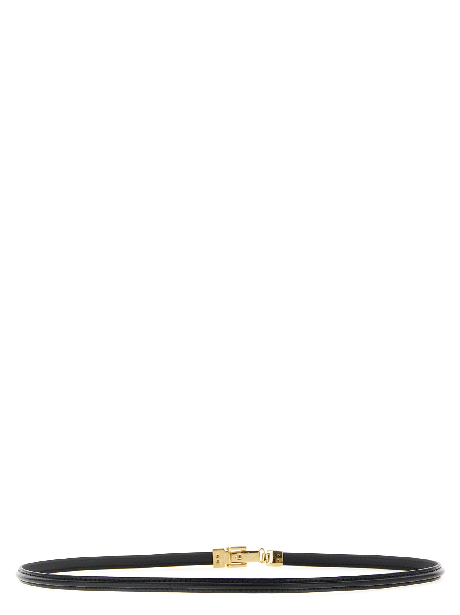 Тонкий блестящий кожаный ремень, металлическая петля с регулируемой застежкой и гравированным логотипом FF.