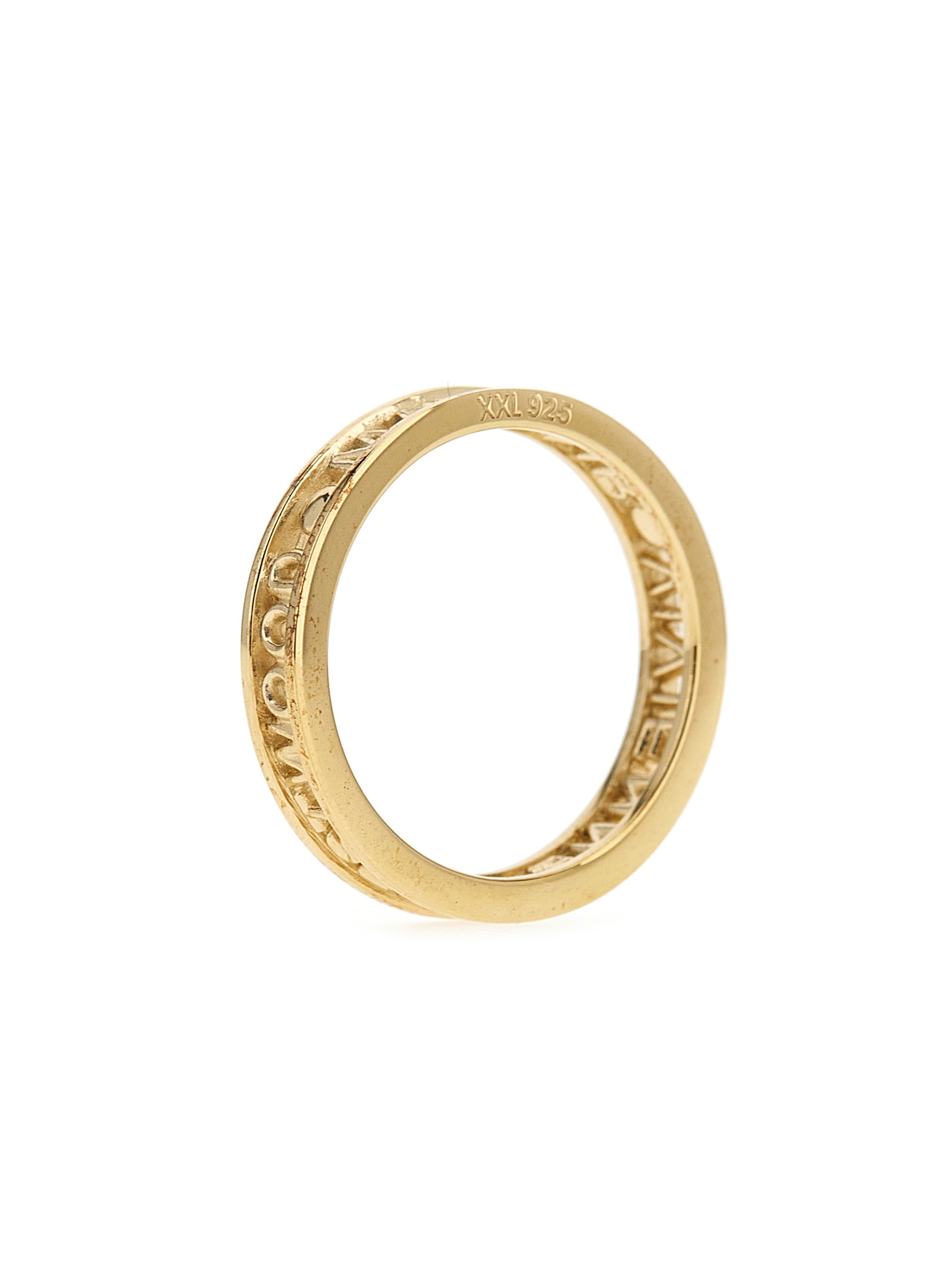 Кольцо «Westminster» из серебра 925 пробы золотистого цвета с надписью Vivienne Westwood Mayfair, выгравированной по всей длине кольца.