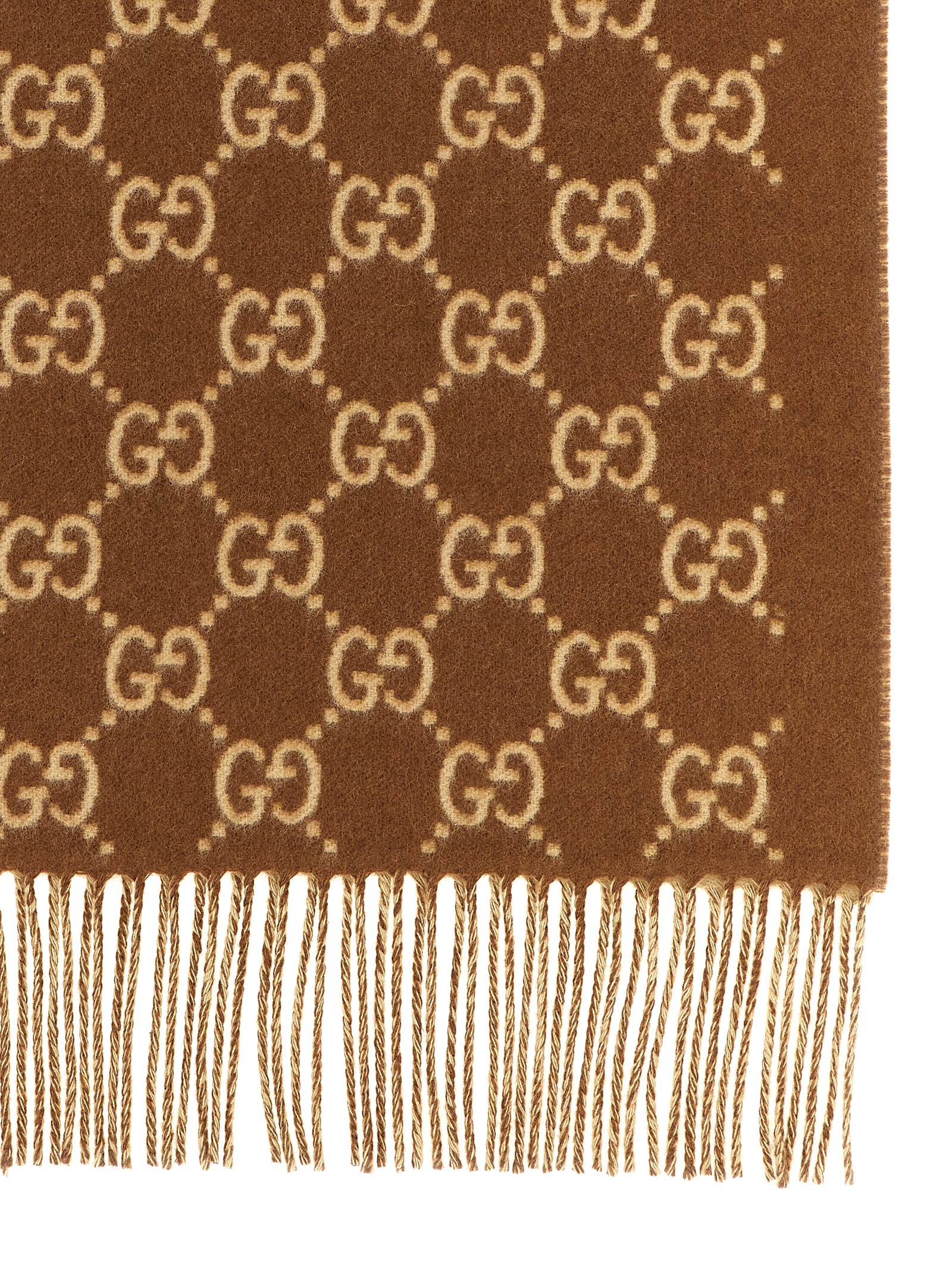 Кашемировый шарф GG с бахромой по краям.