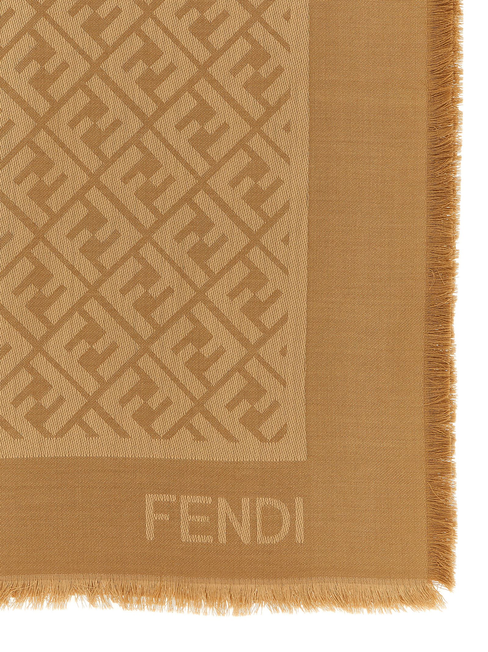 Шаль из смеси шелка и шерсти с жаккардовым узором FF, бахромой по краям.