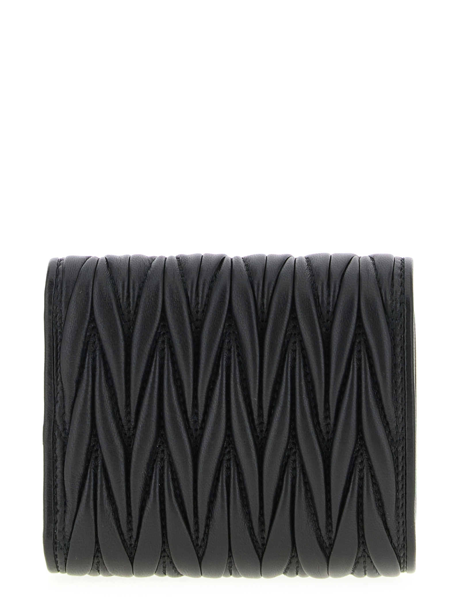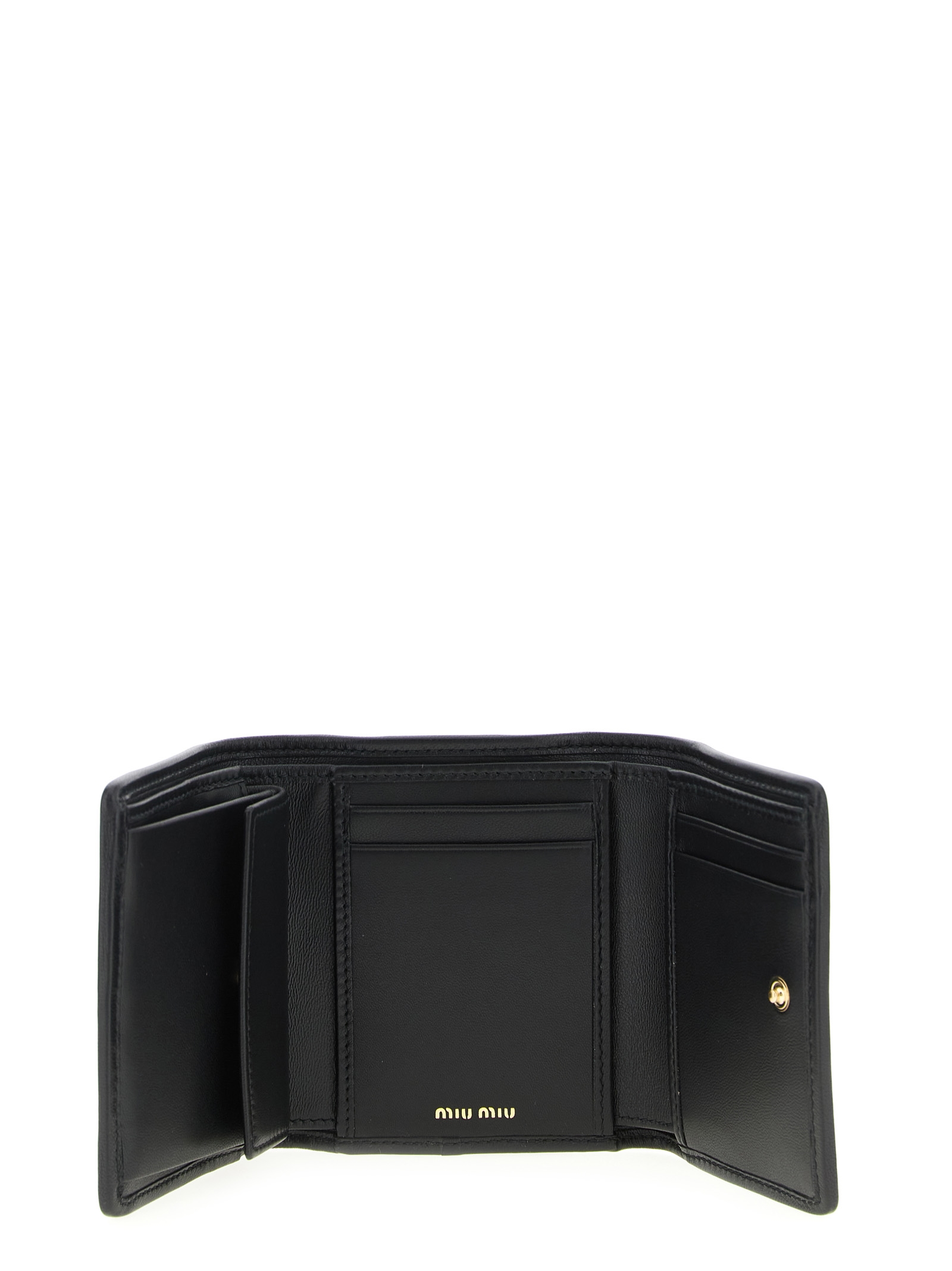 Небольшой кошелек из мателассейной кожи наппа, металлическая буква-логотип на передней части, застежка на кнопке, подкладка из муара.