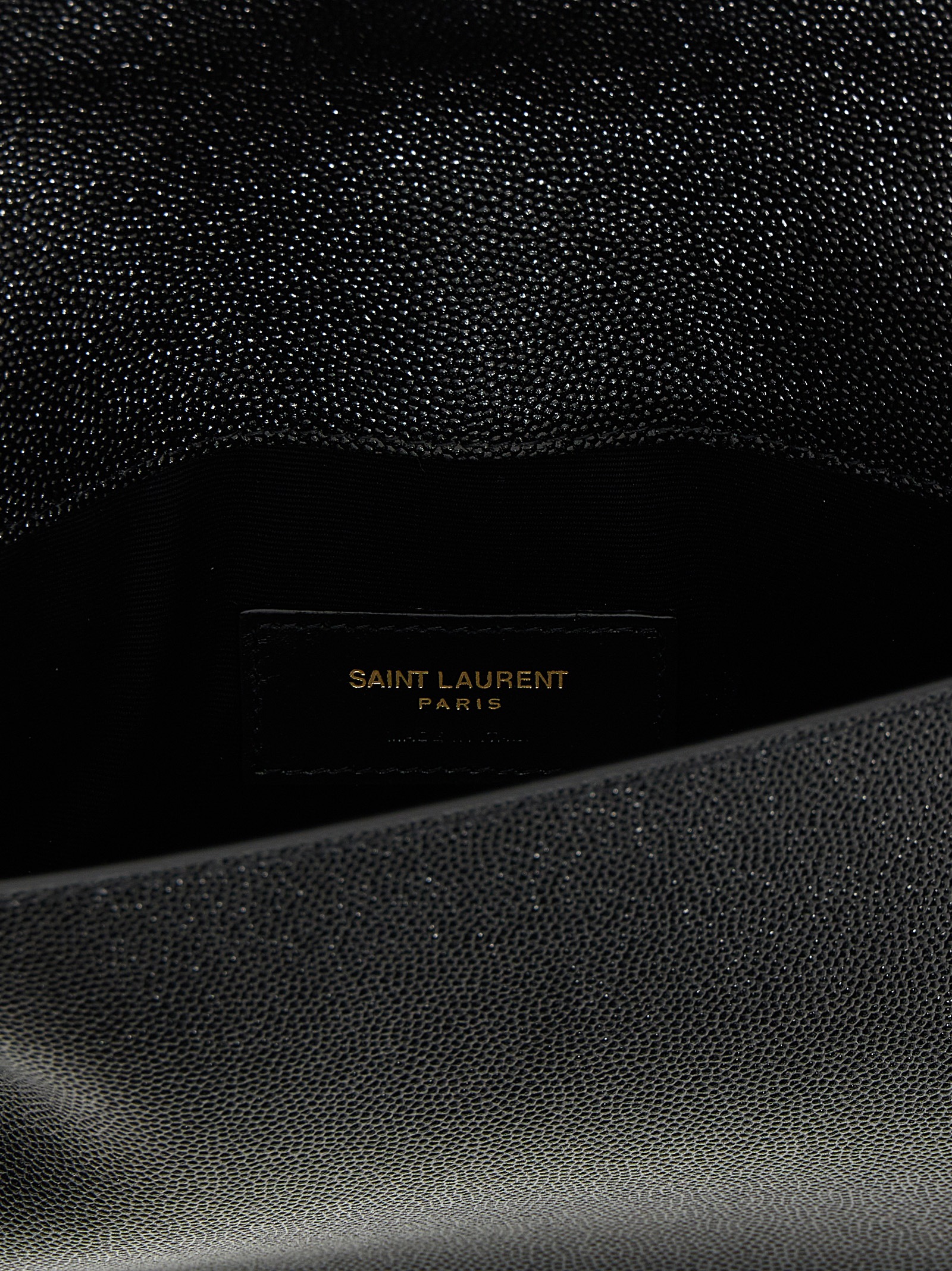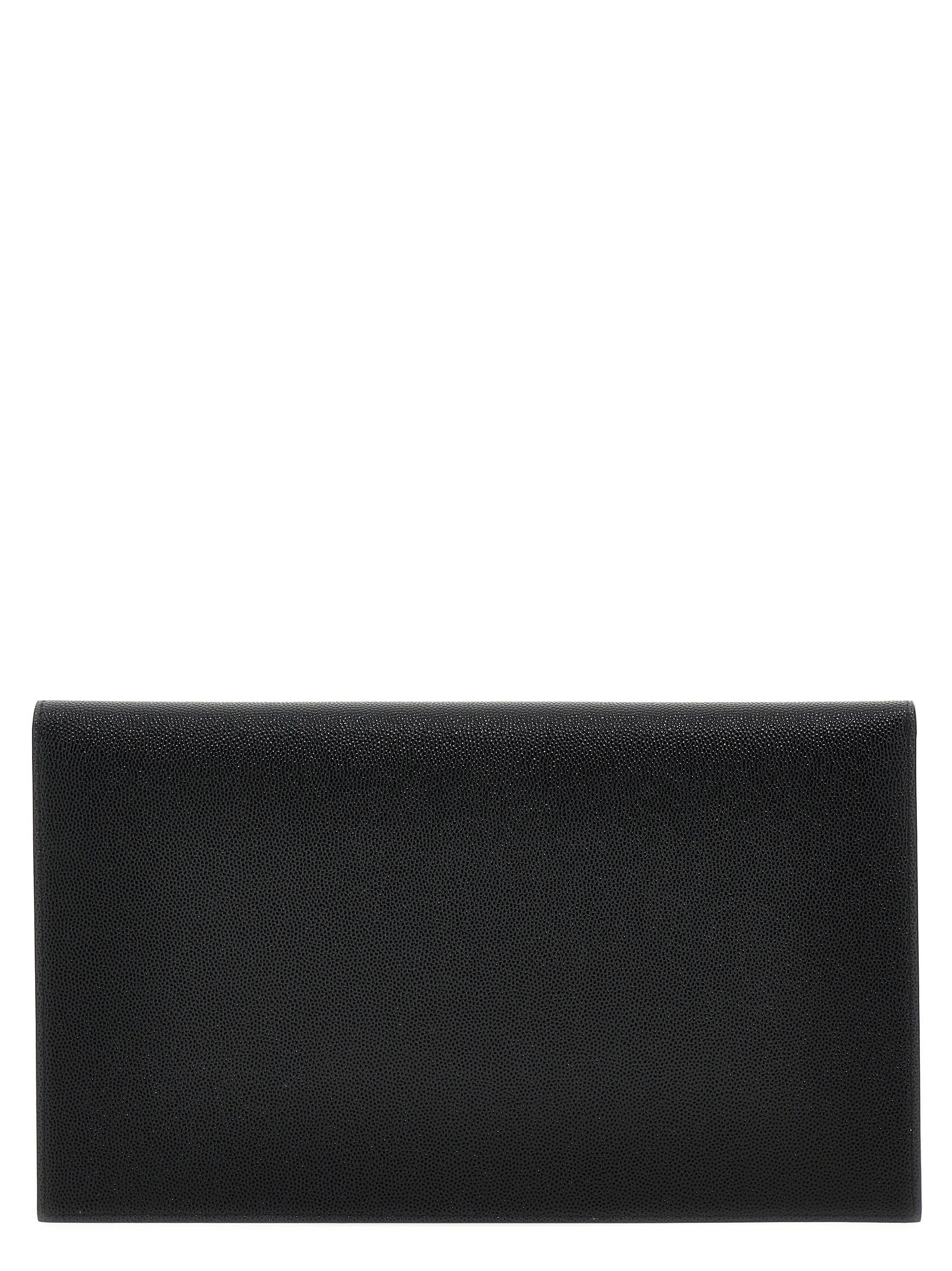 Uptown' clutch bag in grain de poudre leather with YSL metal logo and a flap closure.