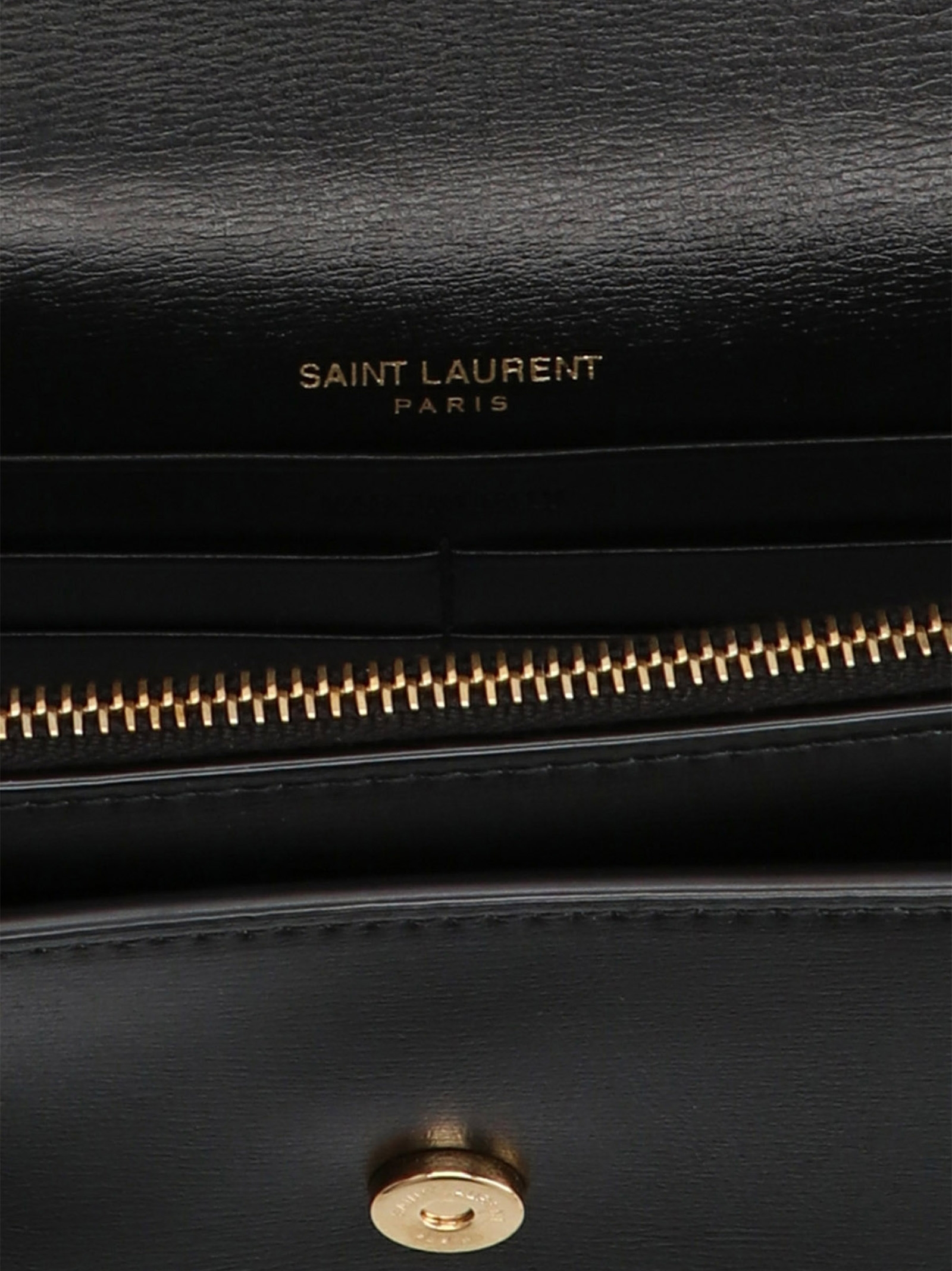 Кожаная сумка «Sunset» с ручкой, съемным плечевым ремнем-цепочкой, магнитной застежкой с металлическим логотипом, внутренними отделениями для купюр, карт и монет.