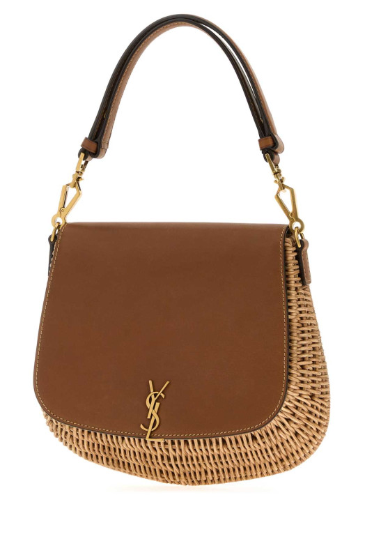 Двухцветная сумка Voltaire из плетеного материала и кожи SAINT LAURENT (838062GF03J)
