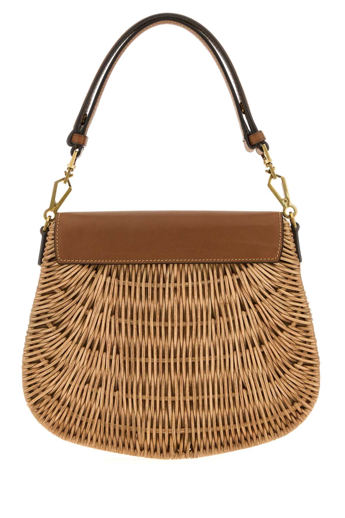 Exterior: 100% Wicker 100% Calf Lining: 100% Fabric Finishing: Antiqued golden metal