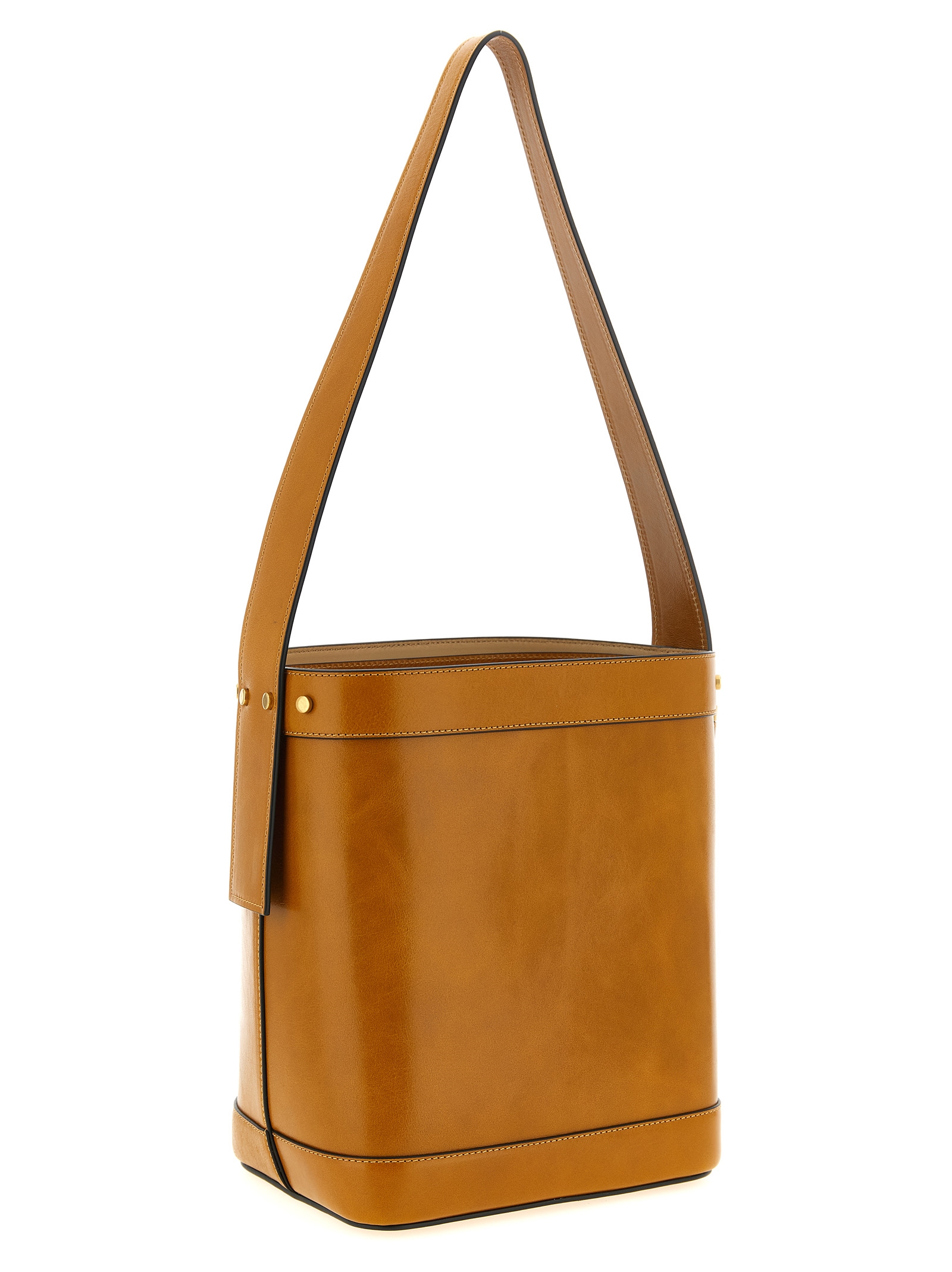 Небольшая сумка-кошик «Pivot» из натуральной кожи с 3D-деталью «Medusa Cameo» и цепочкой из металла под старину на передней стороне, двойными фиксированными ручками, которые можно убрать внутрь сумки, внутренней магнитной застежкой, жестким дном и плечевым ремнем.