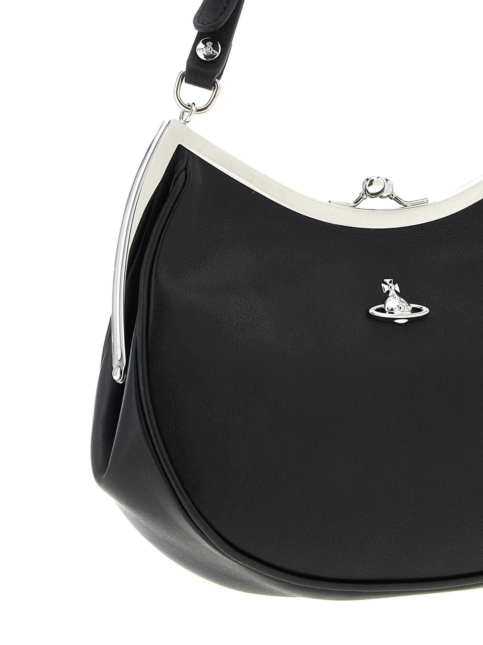 Кожаная сумка через плечо Charm Frame с полумесяцем, металлическим логотипом Orb на передней части, застежкой-кнопкой, регулируемой и съемной ручкой и хлопковой подкладкой.