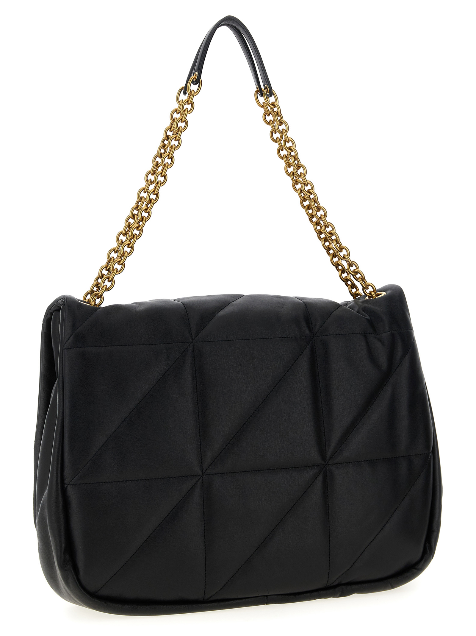 Сумка через плечо «Jamie» из натуральной кожи макси-наппа, стеганая с узором «Carré Rive Gauche», съемный плечевой ремень с цепочкой, застежка на автоматическую кнопку, внутренний карман, металлические детали и бронзовый логотип.