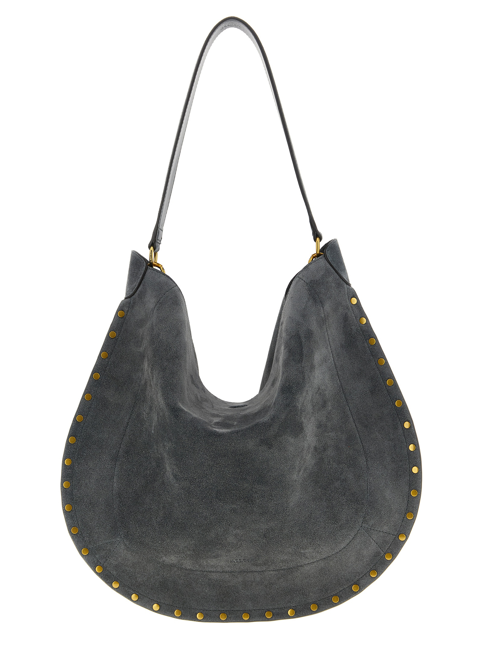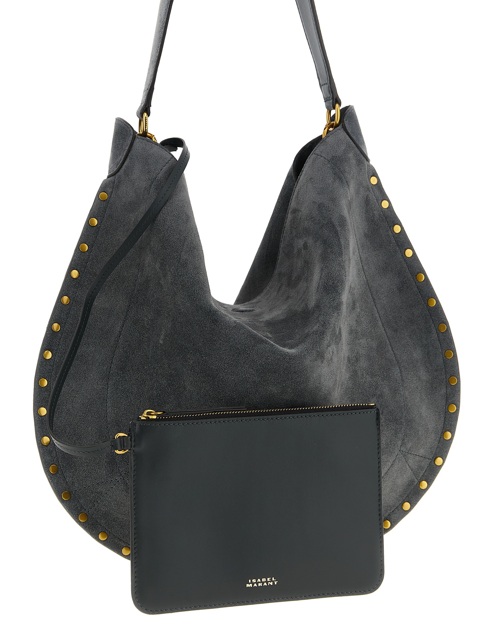 Oskan Hobo Мягкая замшевая сумка через плечо с аппликацией из заклепок, магнитной застежкой, фиксированной ручкой и съемным клатчем.
