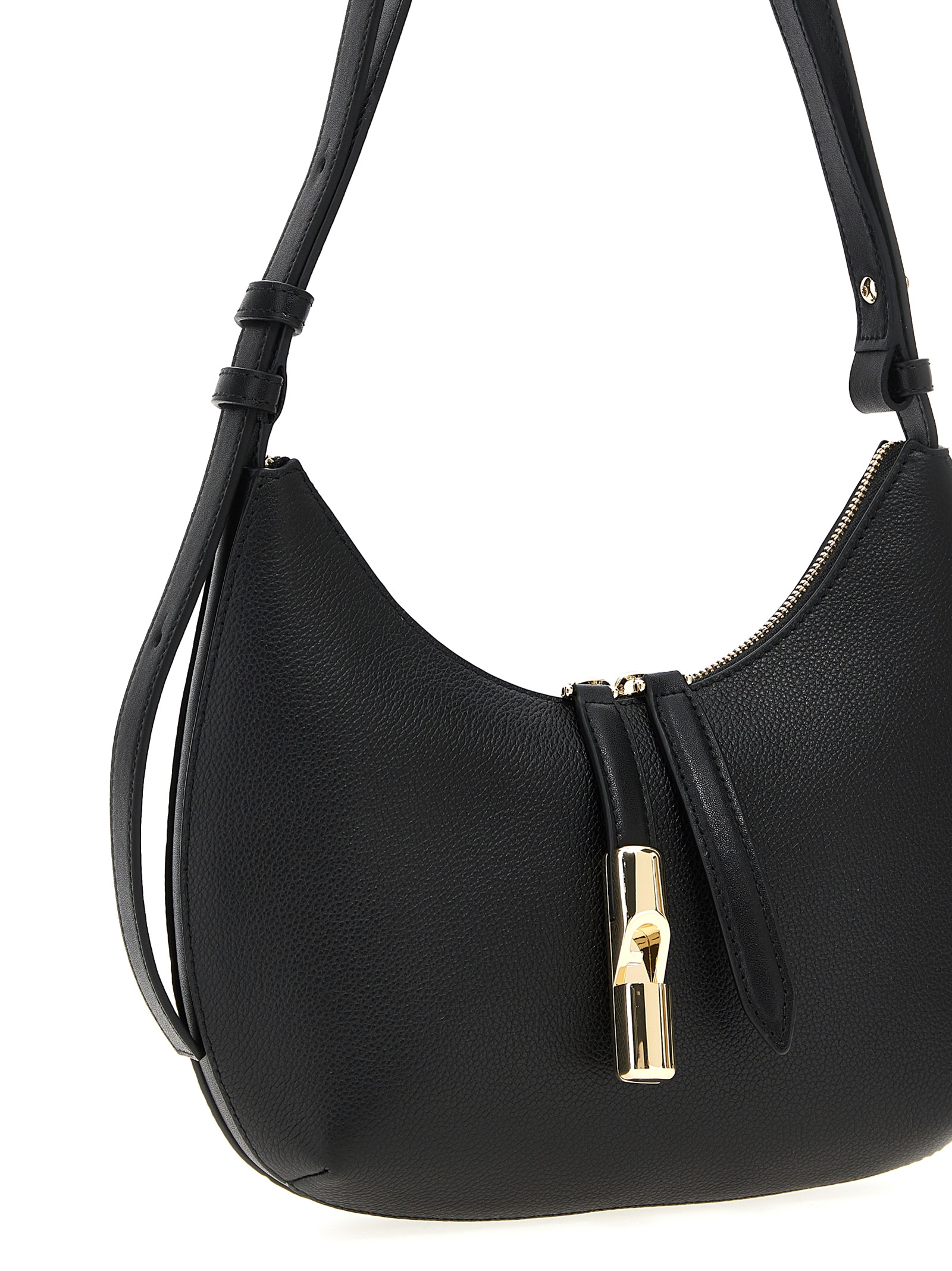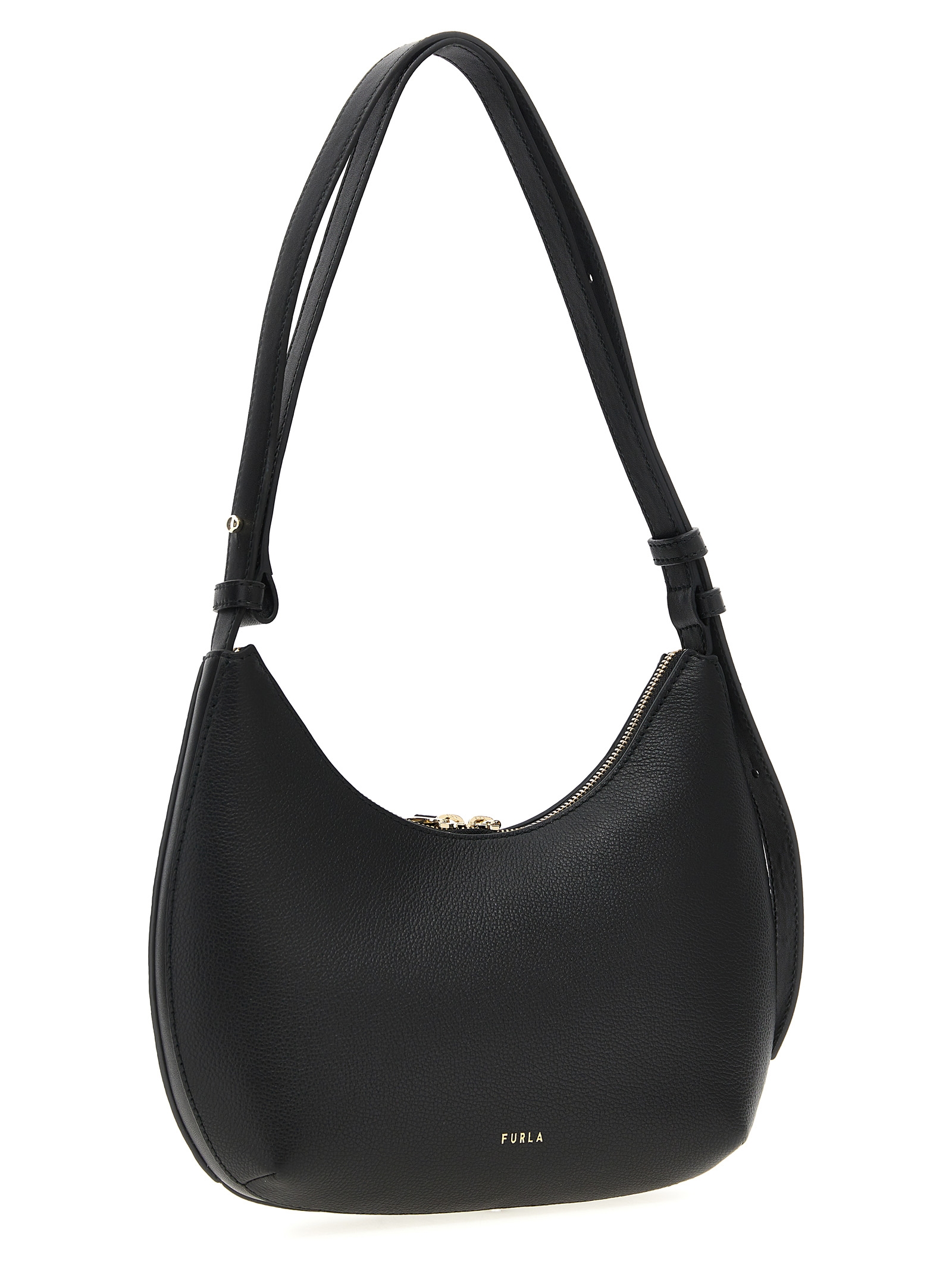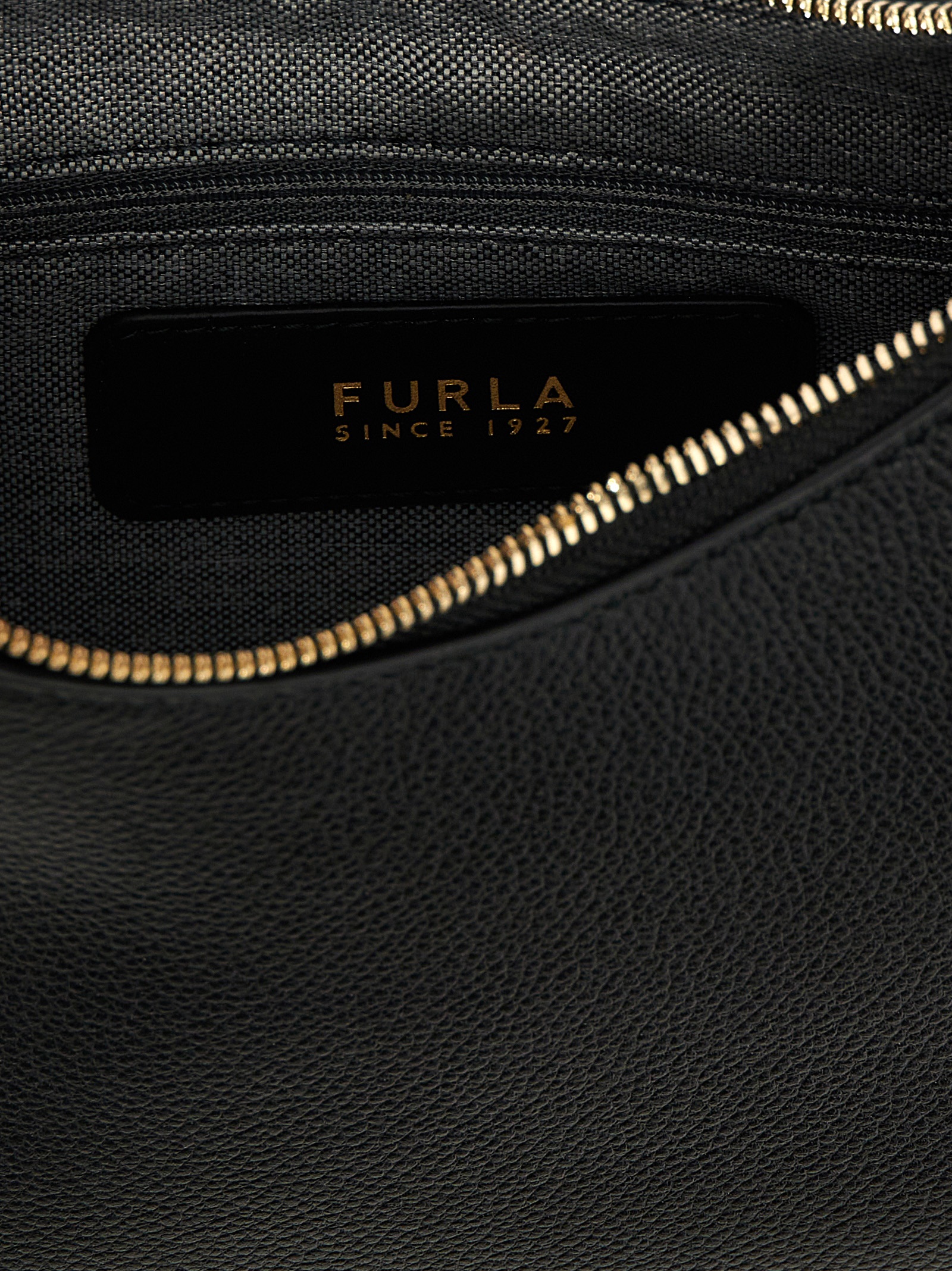 Small 'Furla Goccia' shoulder bag in hammered and smooth leather, zip closure with cylindrical hardware in glossy finish with Arco logo on one of the two leather pullers, adjustable handle.indrical hardware in glossy finish with Arco logo on one of the two leather pullers, adjustable shoulder strap. Adjustable.
