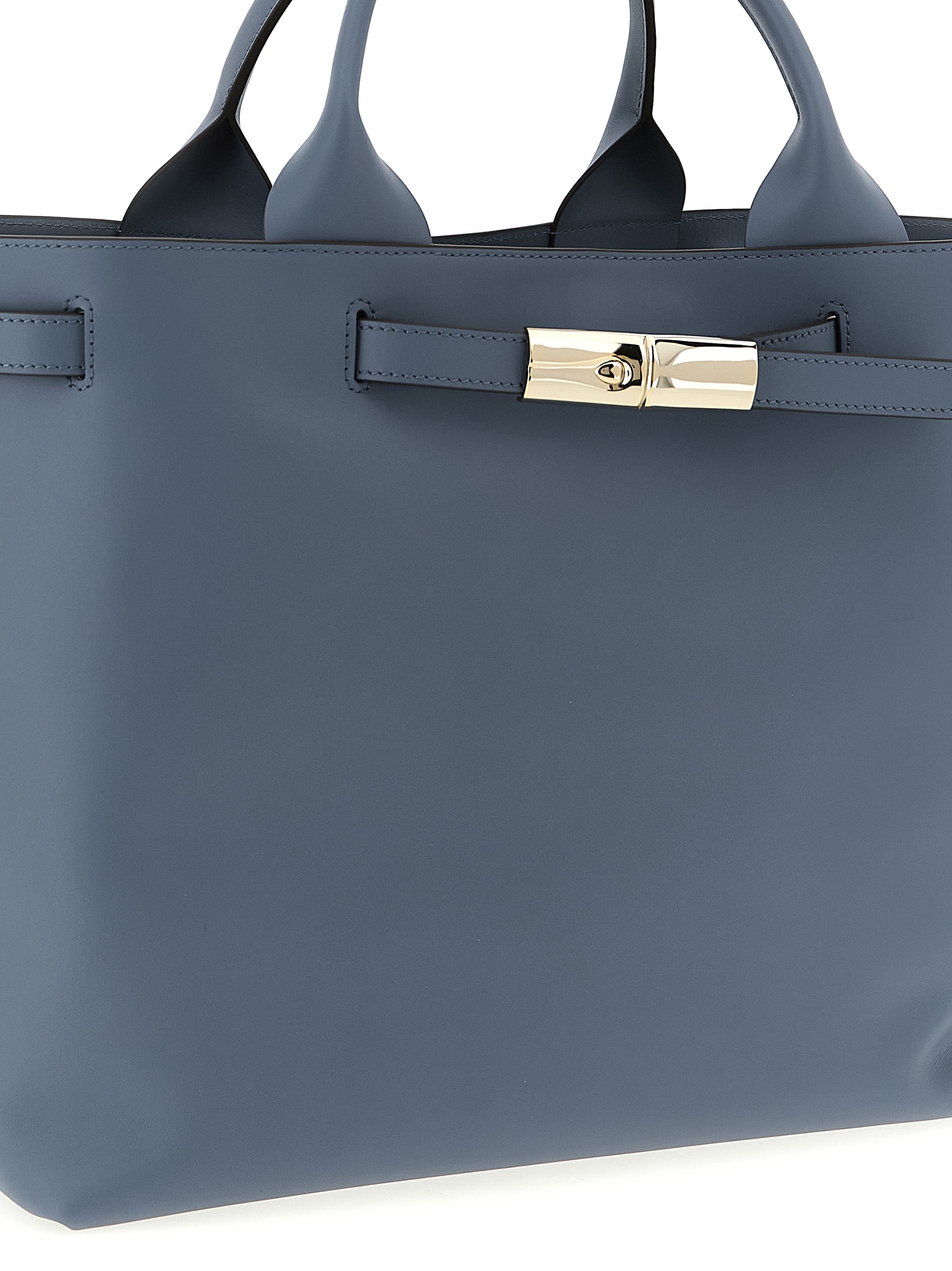 Кожаная сумка «Le Roseau Smart» с двойной фиксированной ручкой, магнитной застежкой, ремешком и металлической пряжкой спереди.