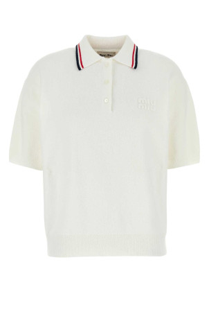 Белая рубашка-поло из эластичной махровой ткани Черная MIU MIU (MMLB31SOOO17NR)