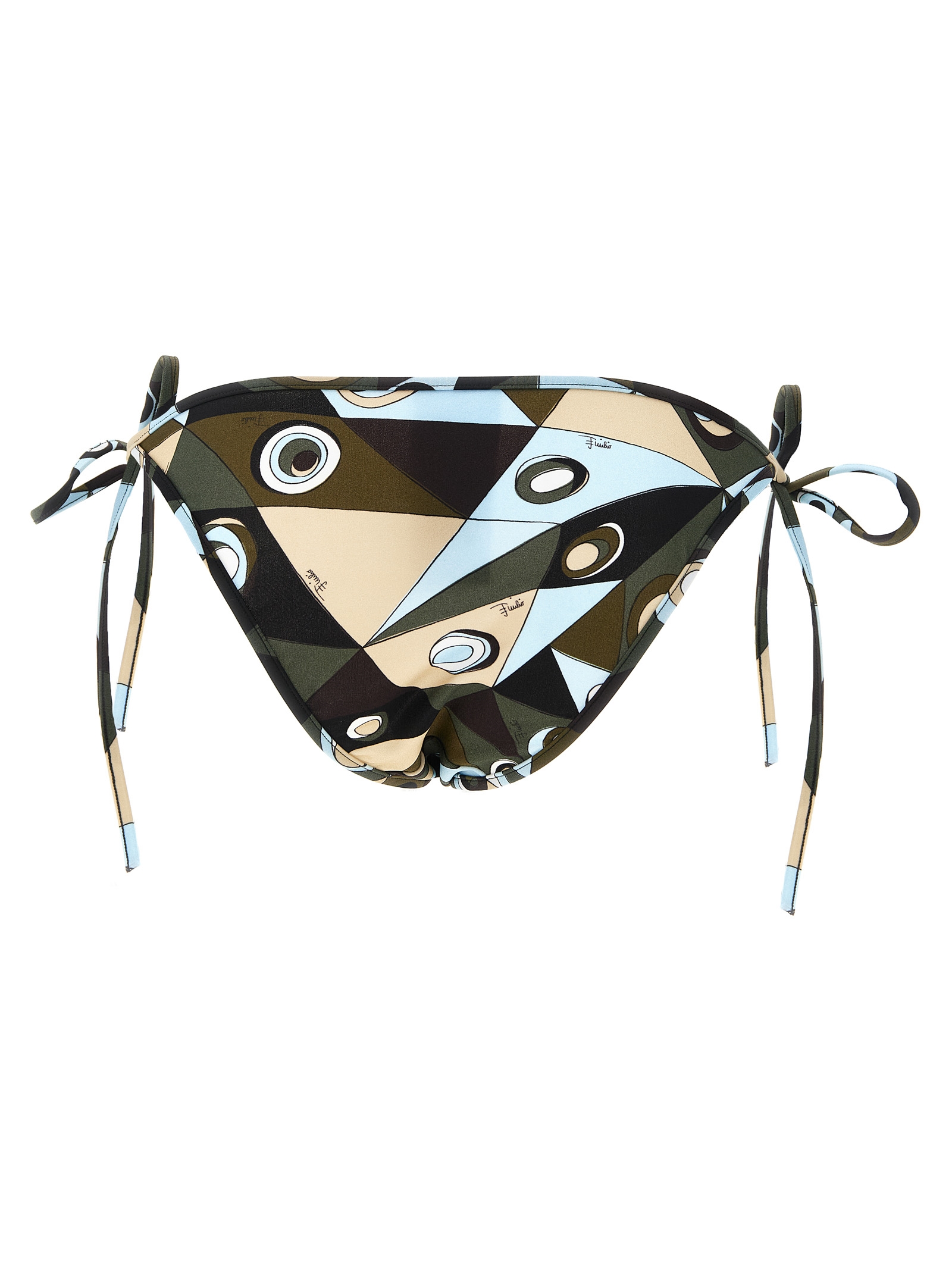 'Panties' low-waist bikini bottoms in Lycra with 'Occhi' print with adjustable laces knotted on the sides.