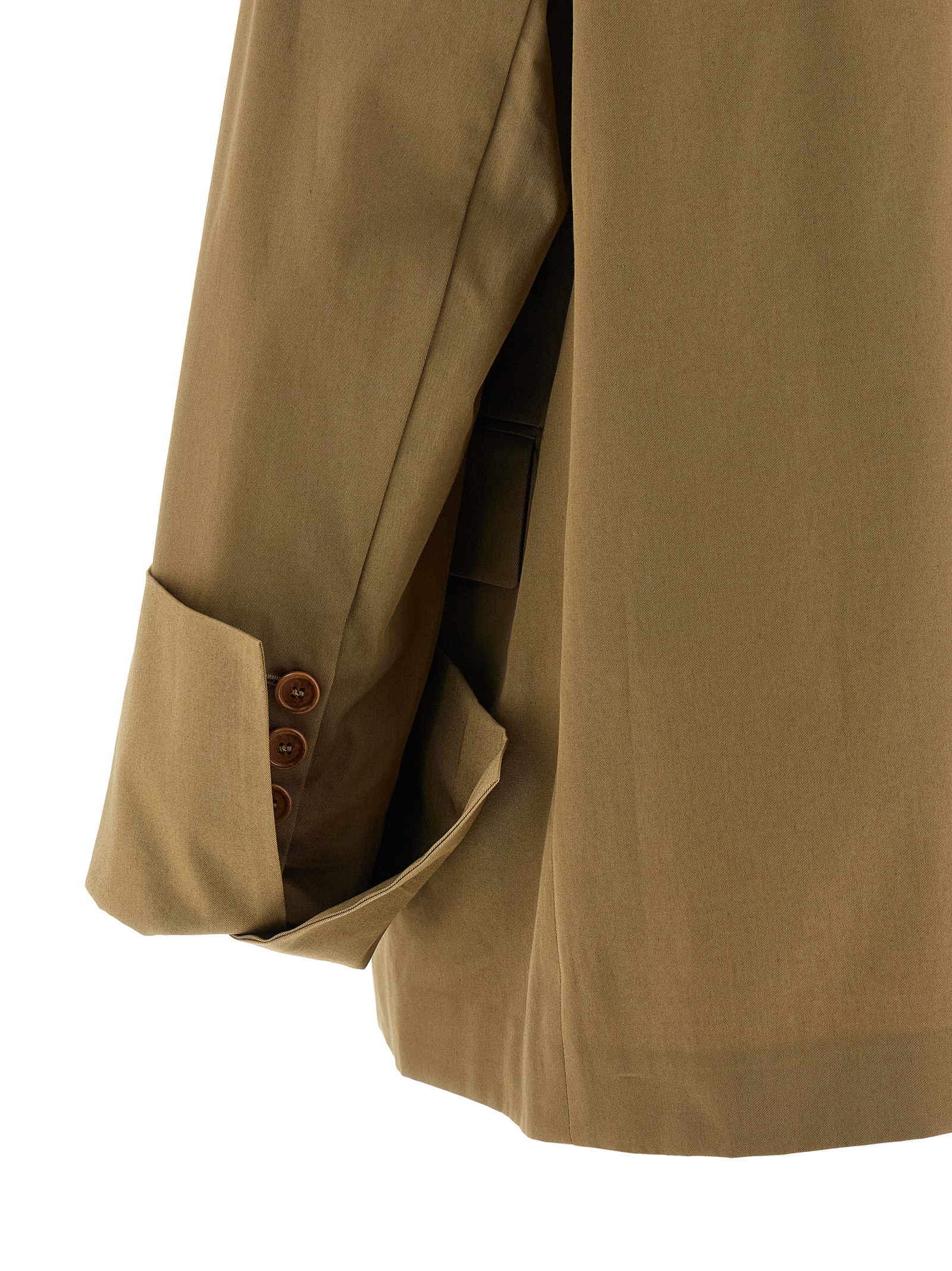 'Birkin' single-breasted deconstructed cotton blazer with front button closure, mirror lapels, breast pocket, flap pockets, long sleeves with double layer cuffs with buttons and buttonholes and turned-up, wide back split.